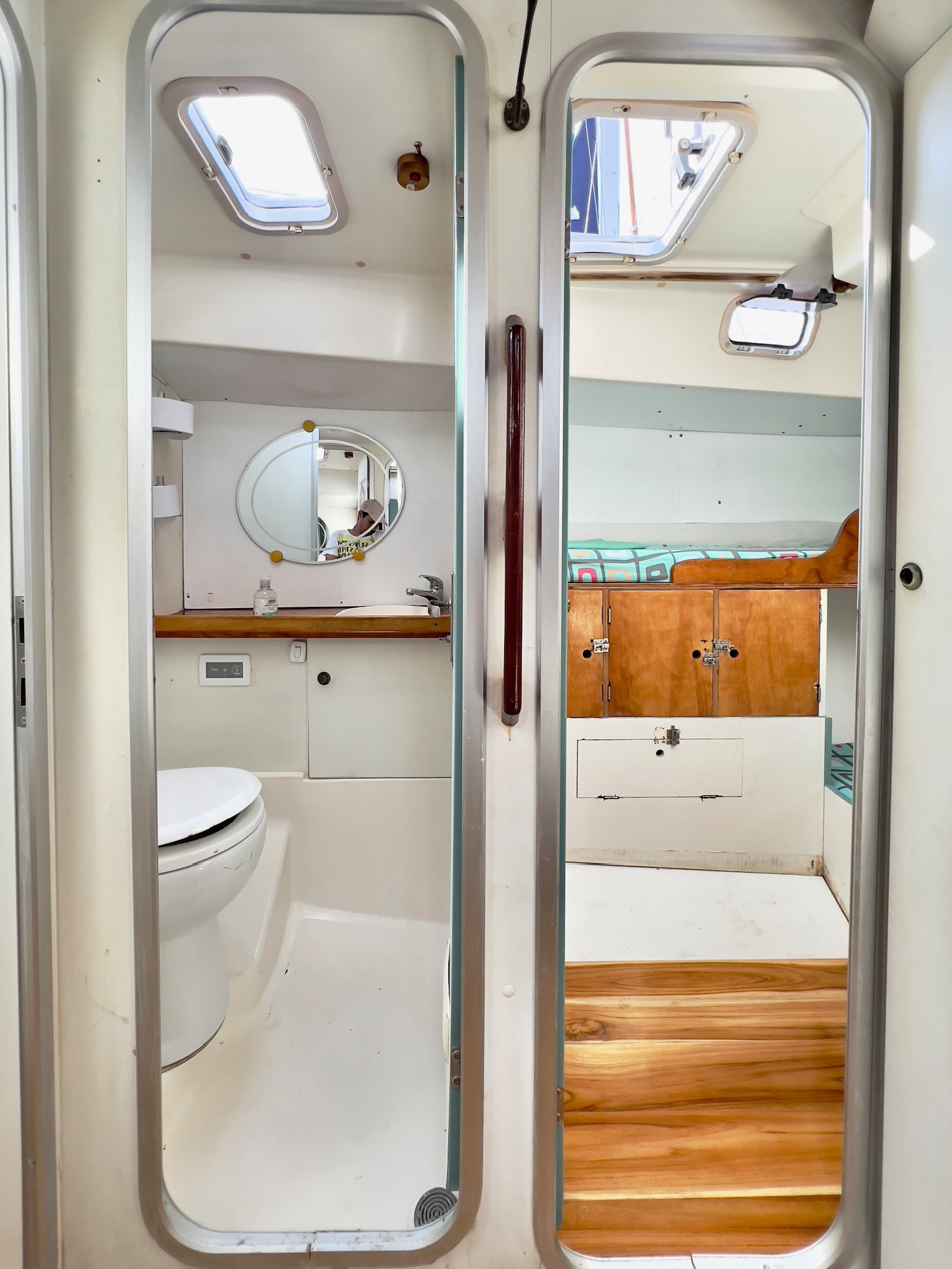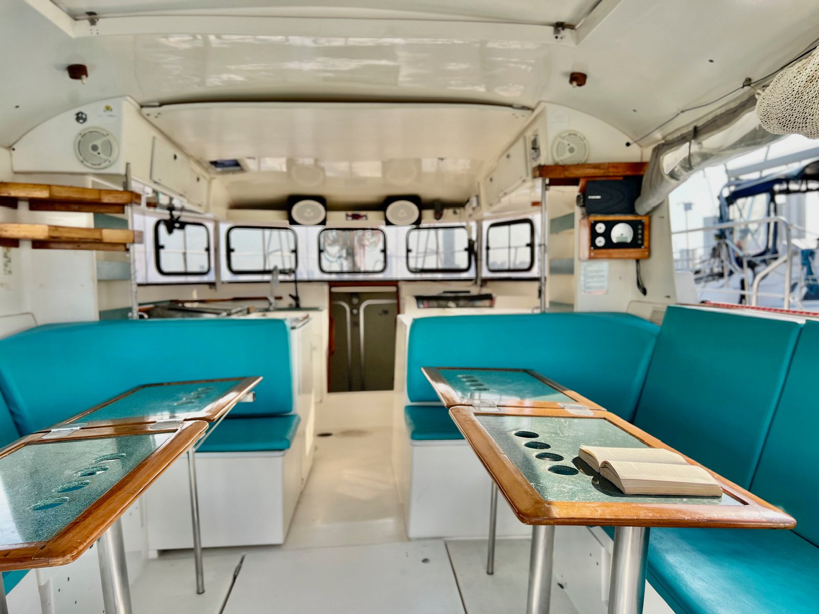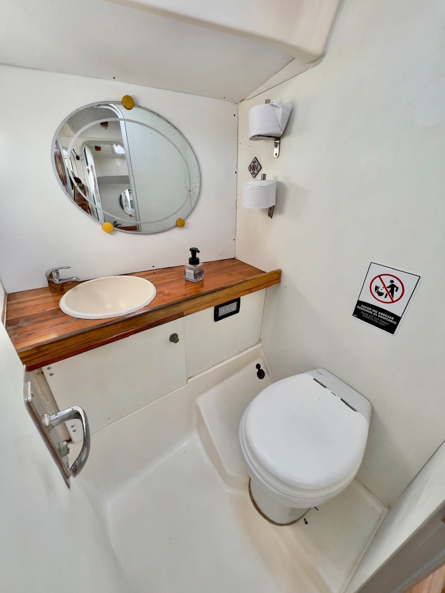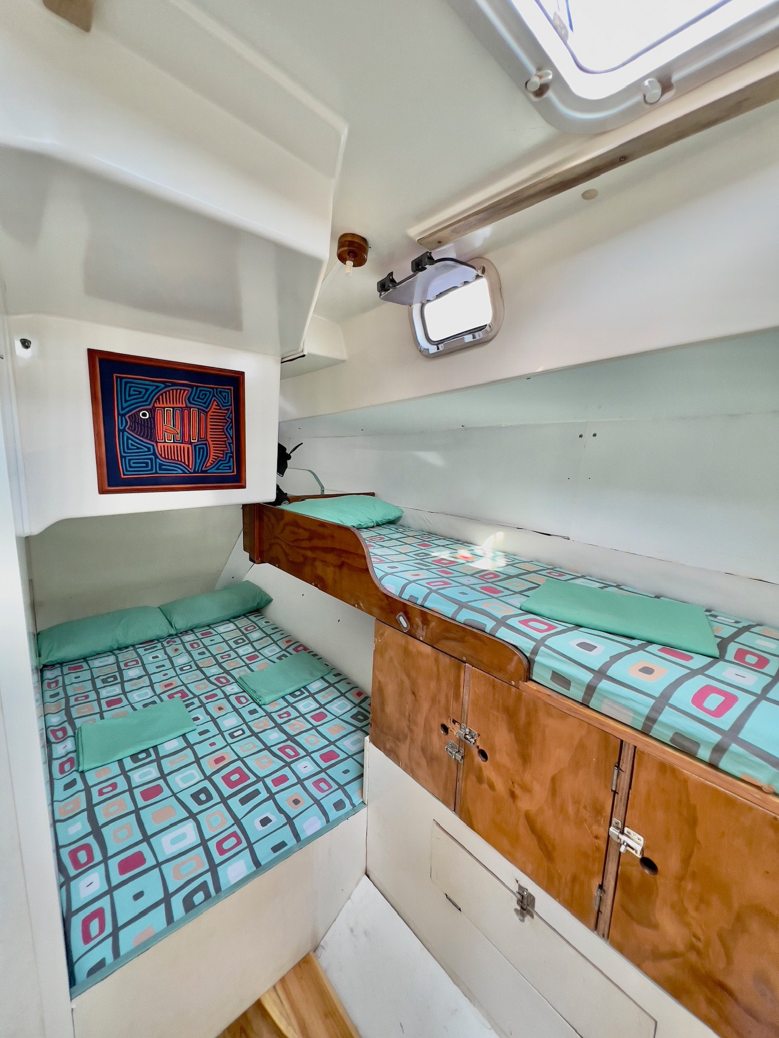 Big Fish I, like its sister Big Fish II, is a 43 foot Atoll 6, designed by Philippe Briand. It was built in 1999 by DUFOUR. Atoll sailboats have been specifically designed for charters in the Caribbean and have a similar style to a catamaran as their salon and kitchen are above deck. It takes up to 10 passengers distributed throughout four cabins. There are two private double cabins and two triple cabins with a double bed and one single bunk in each. There are two shared electric bathrooms. Big Fish I has ample shady lounging space in the salon and room to sunbathe on deck.