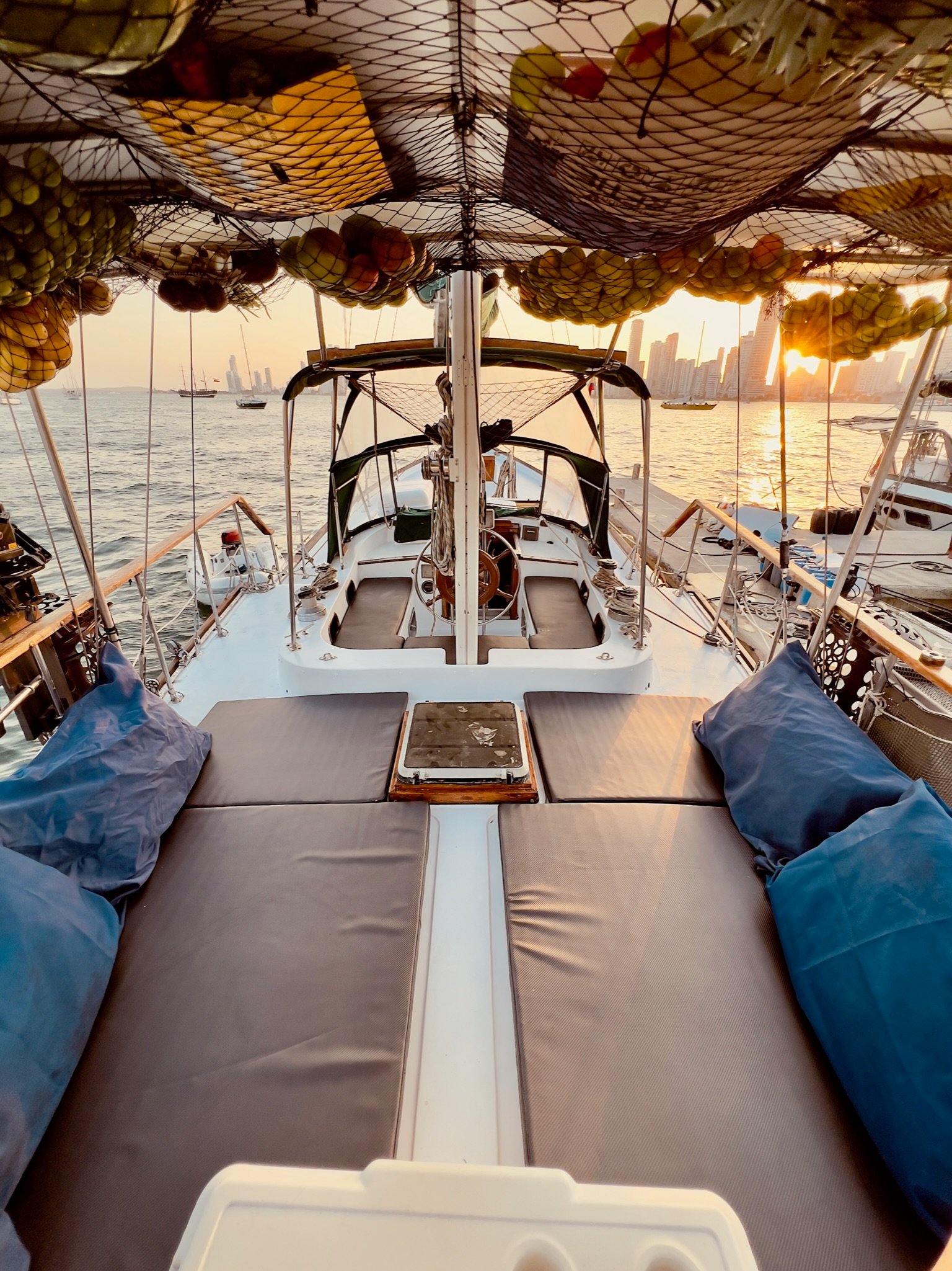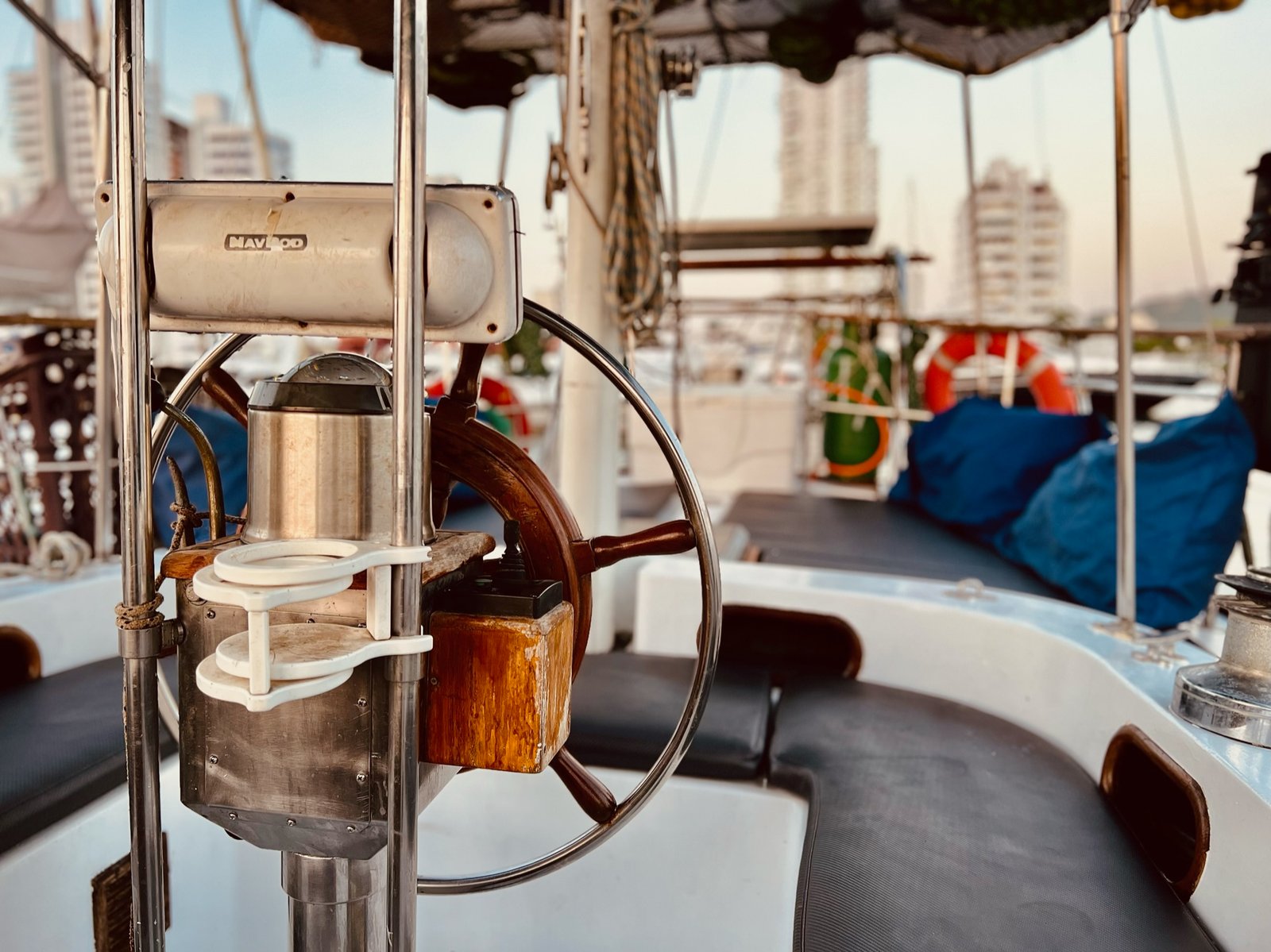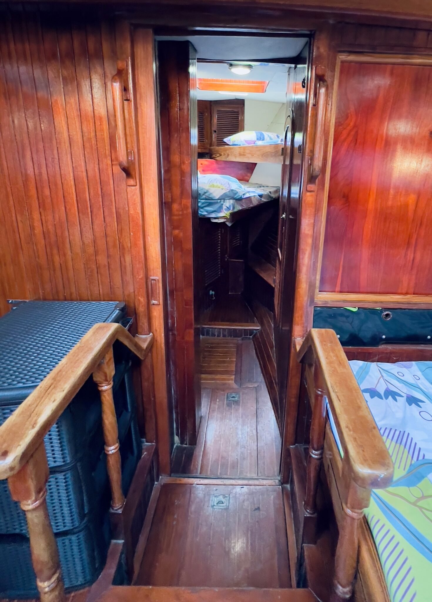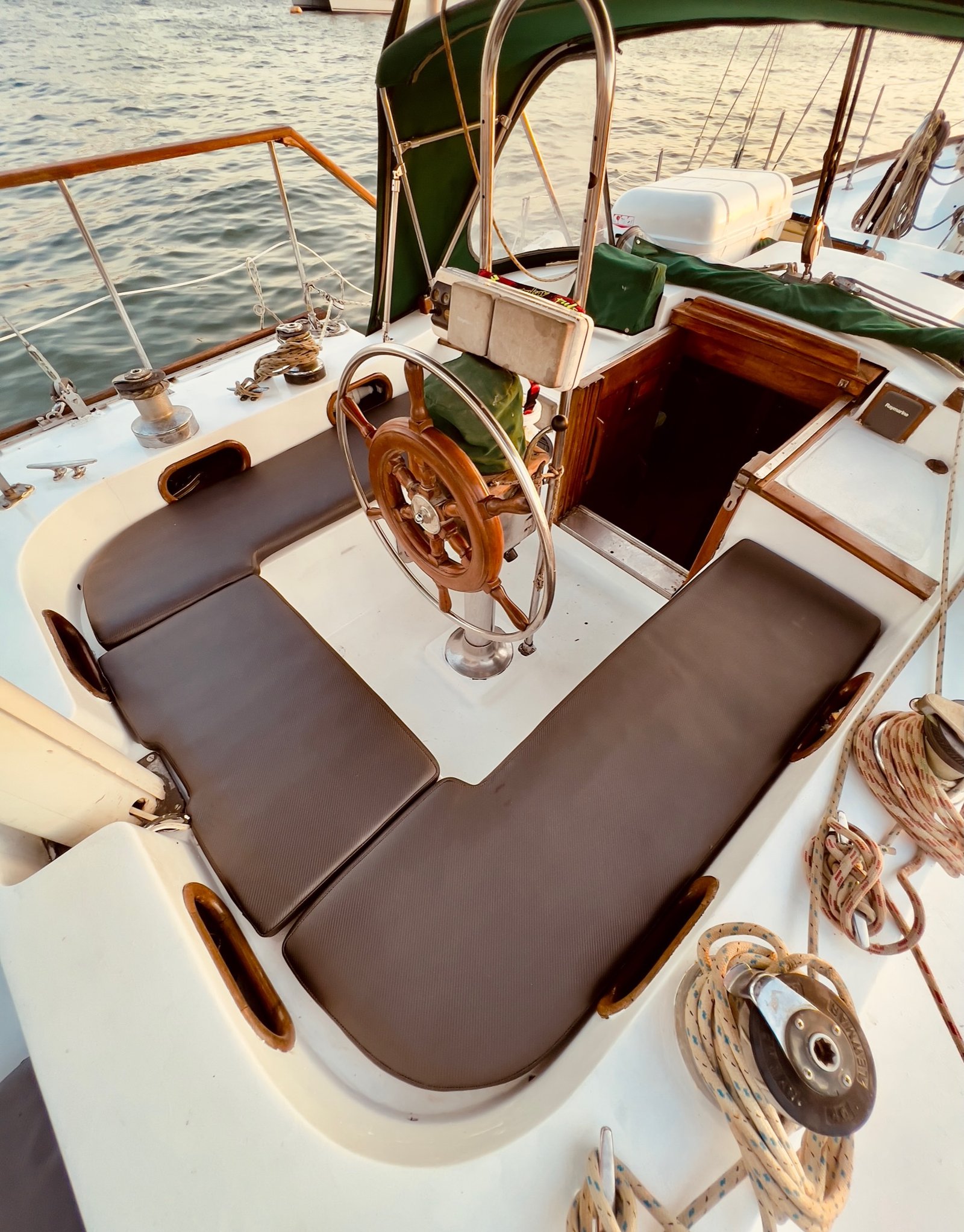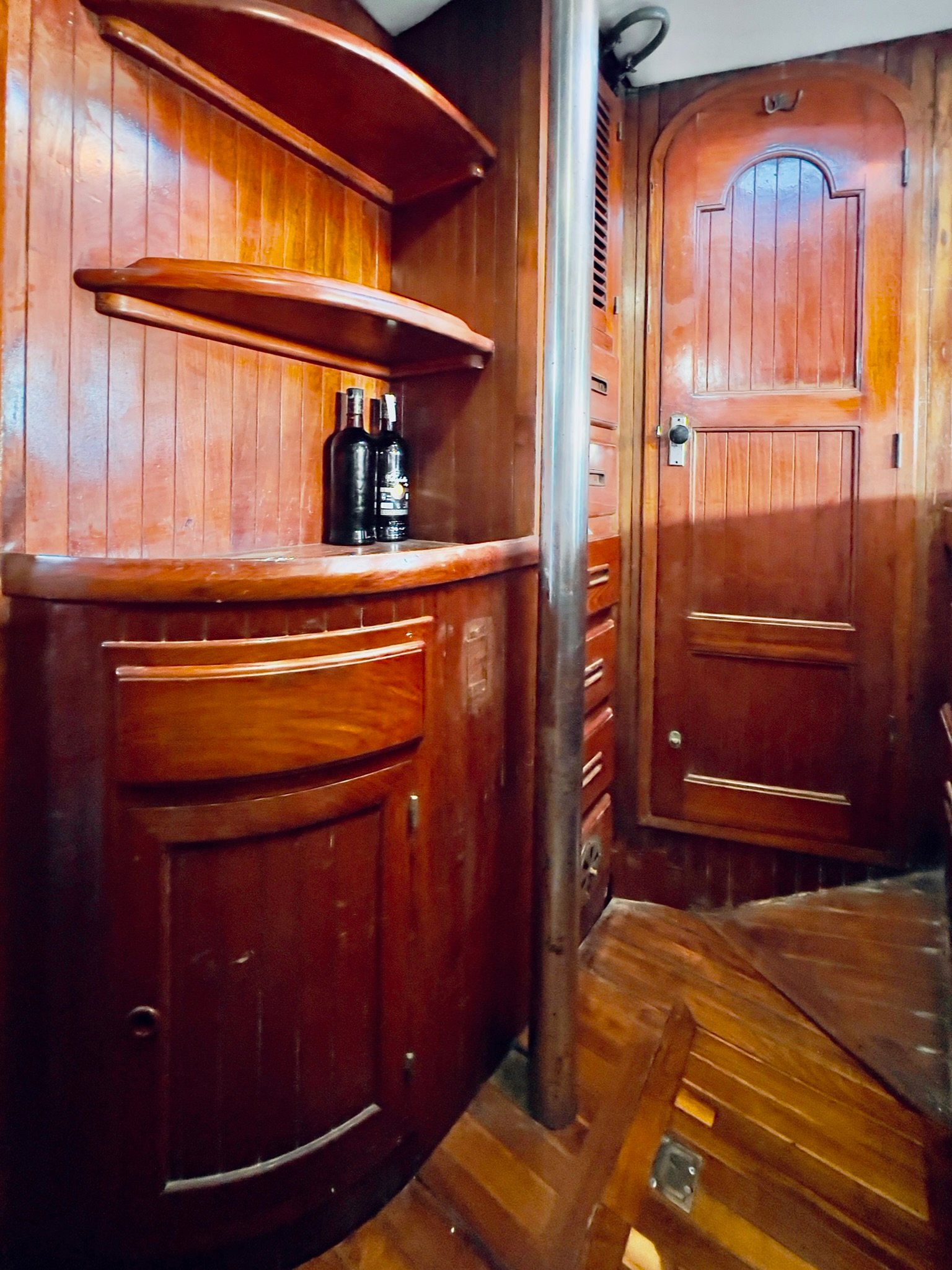 Fantasy is the sister boat to the Sophia, it is also a 51 foot Vagabond Ketch sailing boat. It was built in 1985 and has a beautiful classic design. It takes up to 10 passengers, with a three person cabin in the bow with a double bed and a single bunk above. There is also one private cabin with two single bunks and in the main saloon there are three single bunks and one double bed. There is a large aft cabin with a king size bed, this is usually reserved for crew.