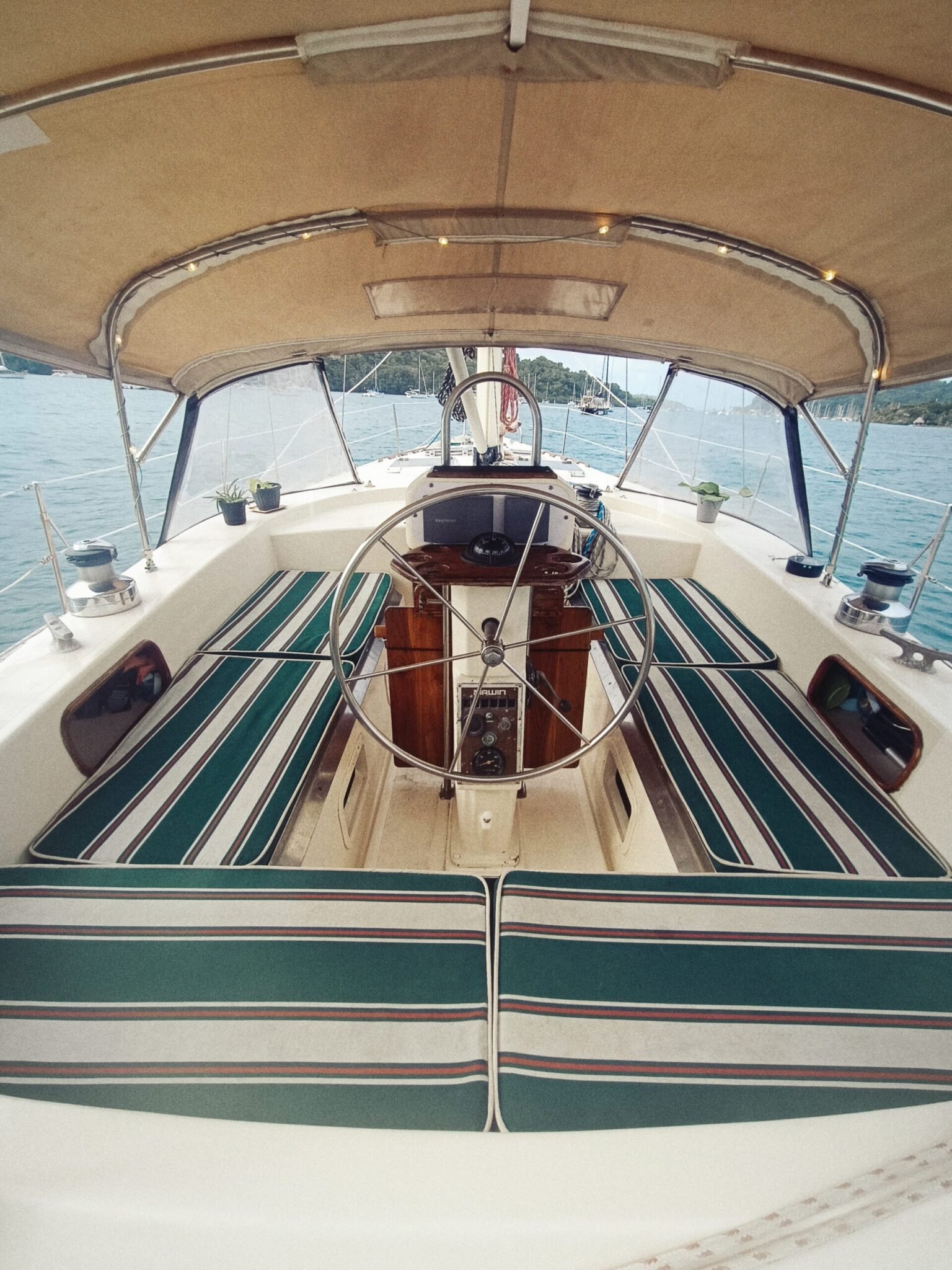 The Itaca is a 44-foot Irwin monohull that has been completely refurbished, standing out for its exceptional comfort and spacious living areas. It features two cabins, each equipped with a private bathroom, a salon that integrates the kitchen and dining area, and a generous exterior space. Its center cockpit design maximizes the spaciousness of both the aft cabin and the exterior area, offering a more comfortable sailing experience.