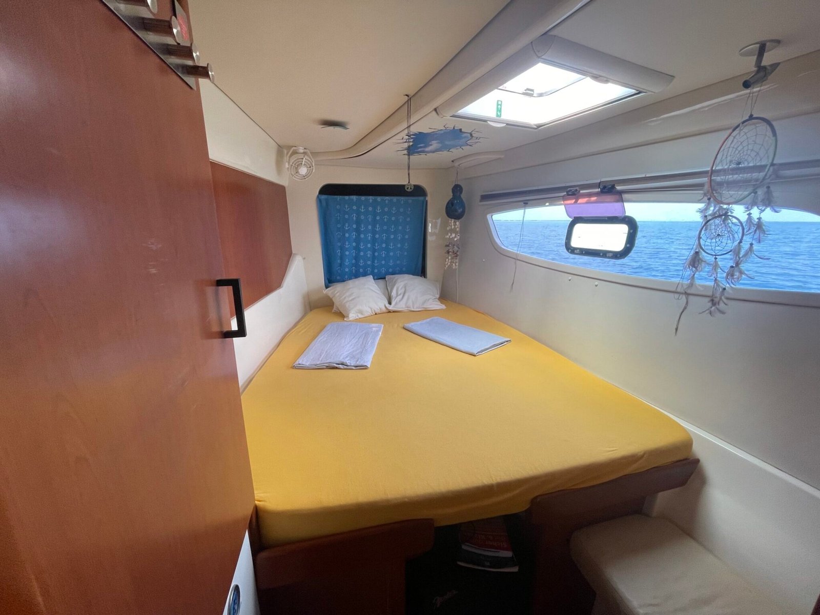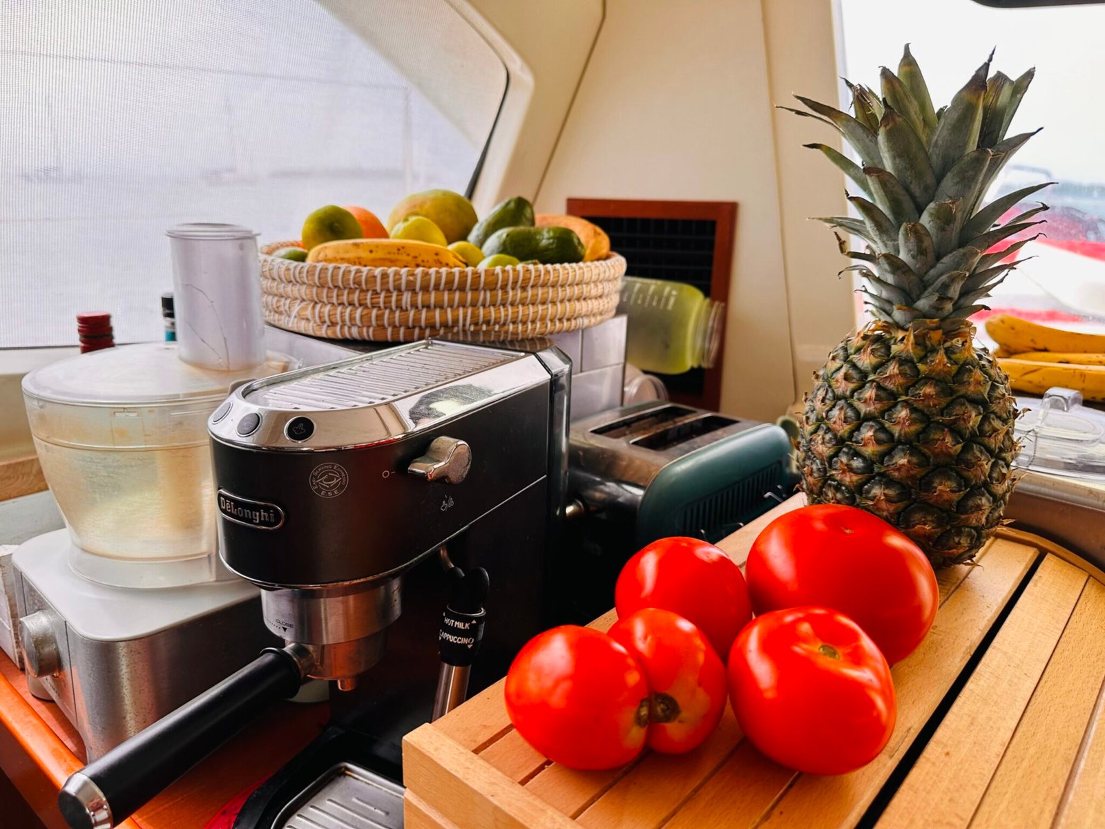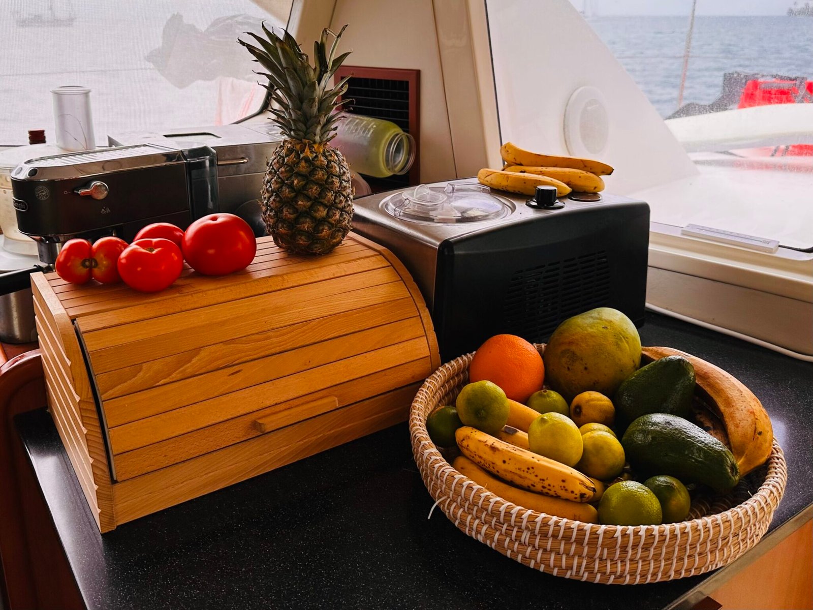 Ocean Twins is a 44-foot, modern Leopard catamaran. She can accommodate up to 6 passengers in 3 double private cabins with private bathrooms. Each cabin has a fan, air conditioning, and Starlink Wi-Fi. There is fishing equipment, snorkeling gear, 2 stand-up paddle boards, a kayak, an ice maker, and a water maker. You will also enjoy homemade bread and yogurt on board.