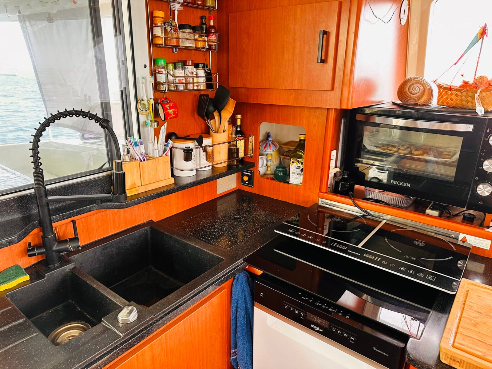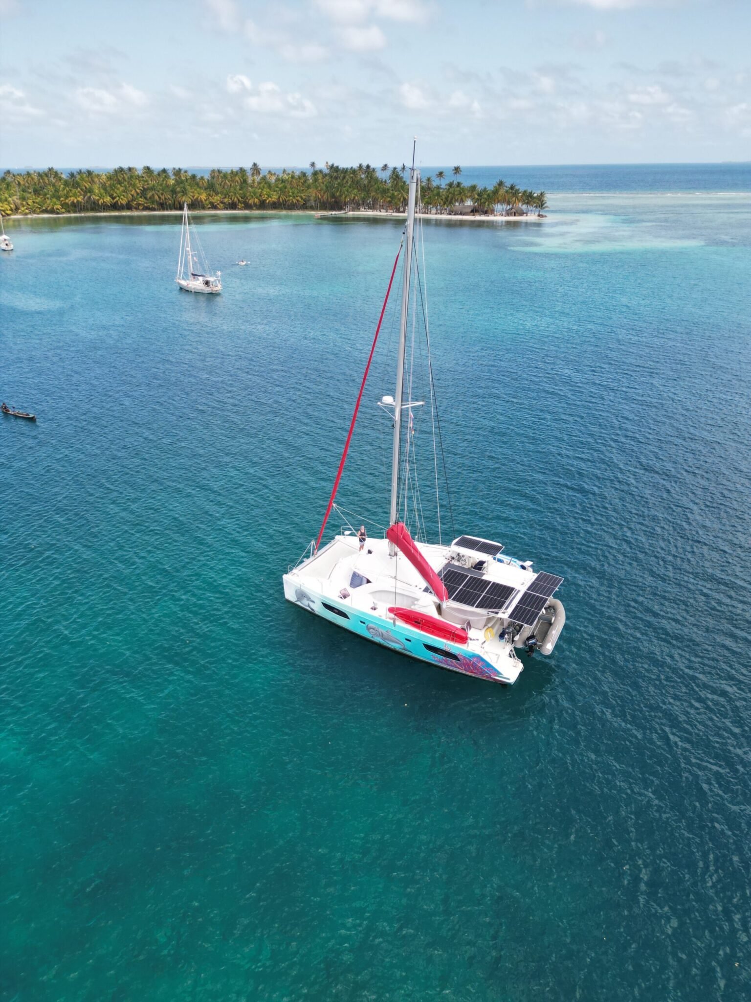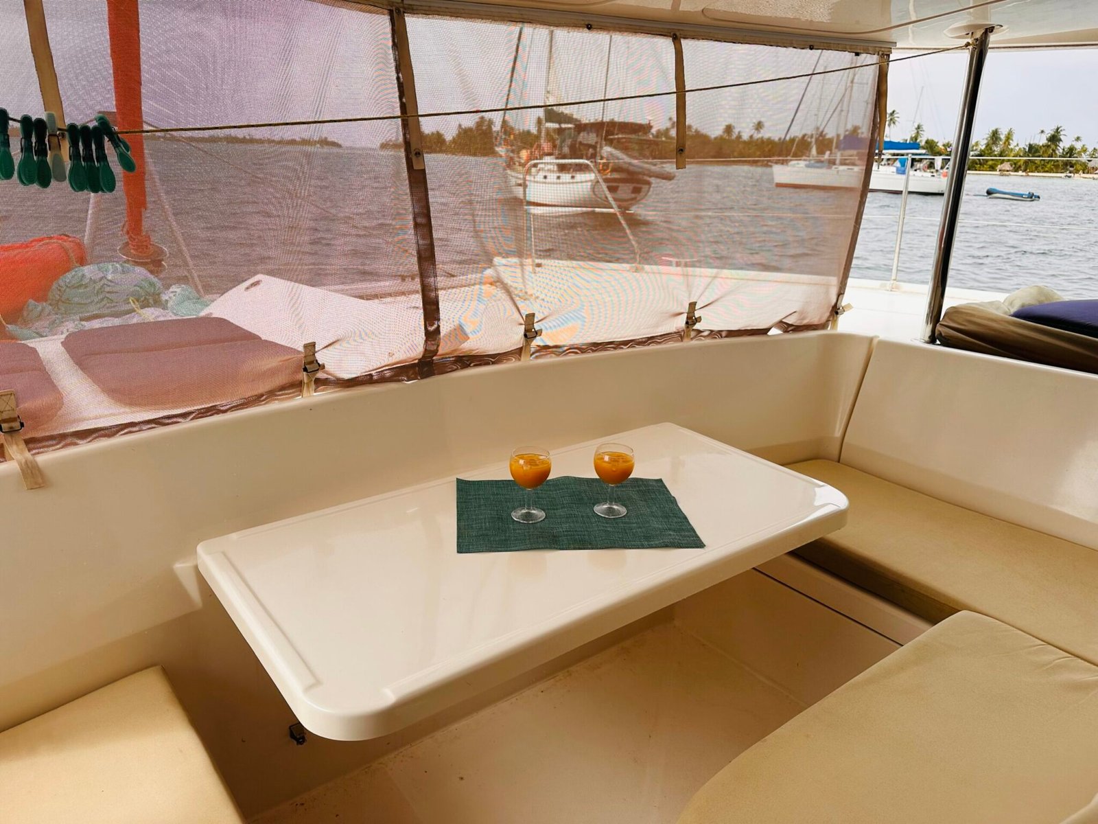 Ocean Twins is a 44-foot, modern Leopard catamaran. She can accommodate up to 6 passengers in 3 double private cabins with private bathrooms. Each cabin has a fan, air conditioning, and Starlink Wi-Fi. There is fishing equipment, snorkeling gear, 2 stand-up paddle boards, a kayak, an ice maker, and a water maker. You will also enjoy homemade bread and yogurt on board.