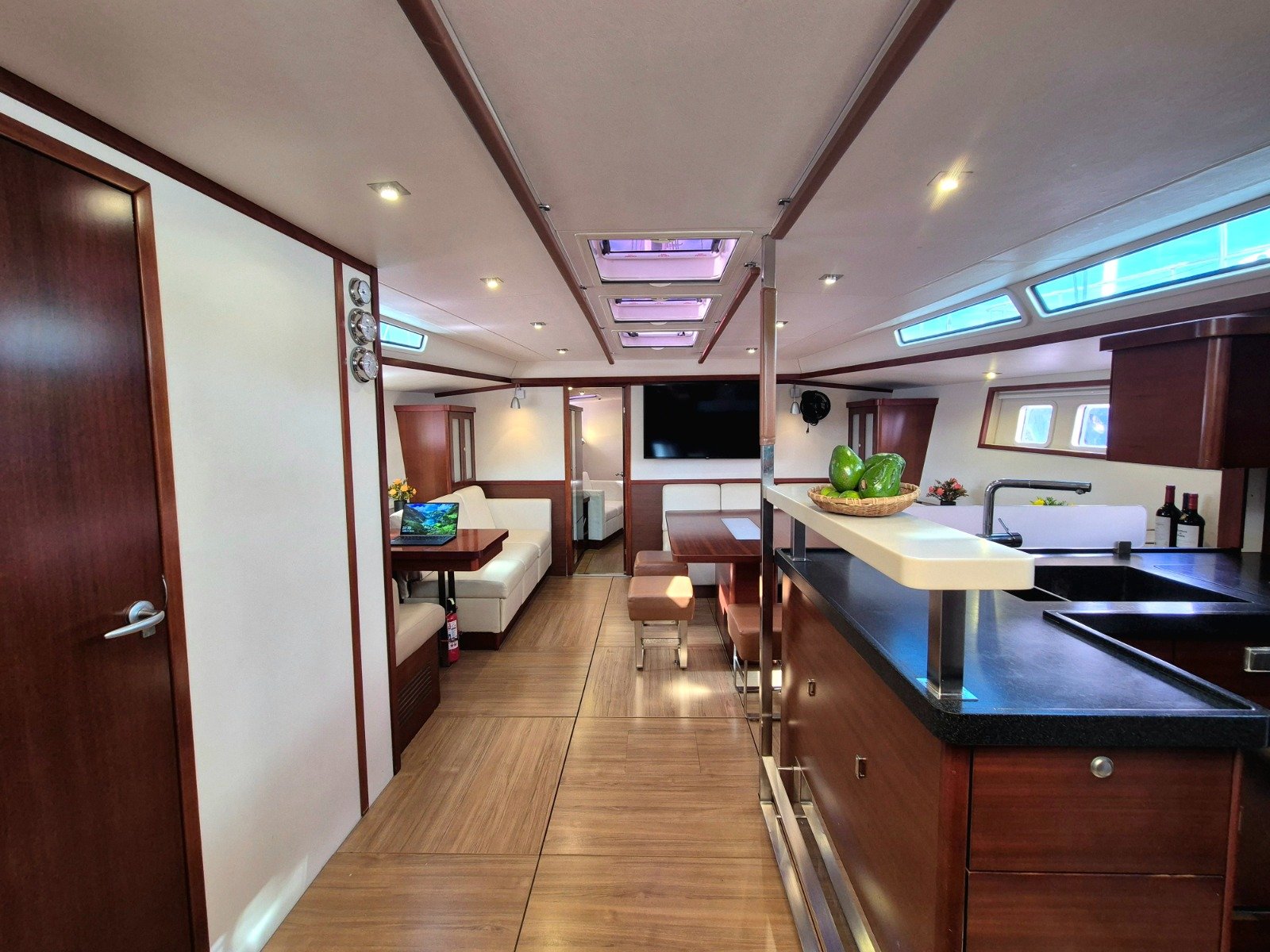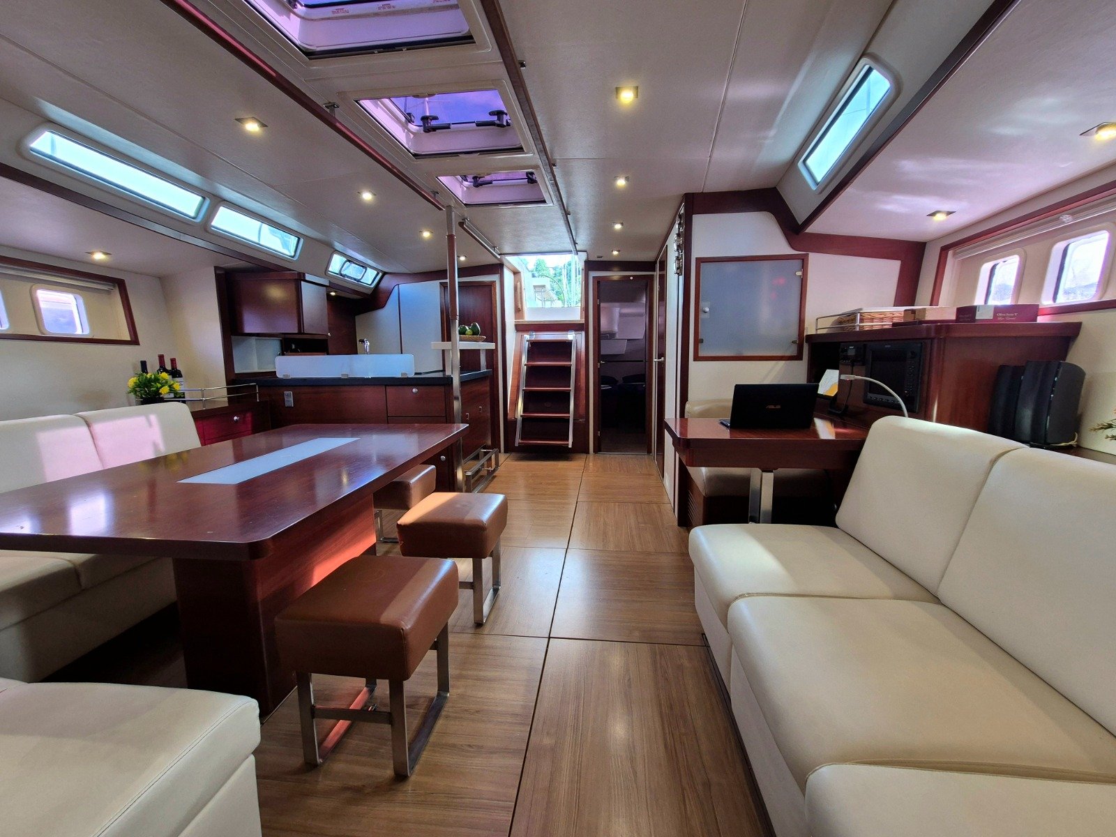 Sailing Freedom is a luxurious sixty three foot monohull, a Hanse 630 featuring three spacious guest cabins, a spacious saloon, and elegant outdoor seating.