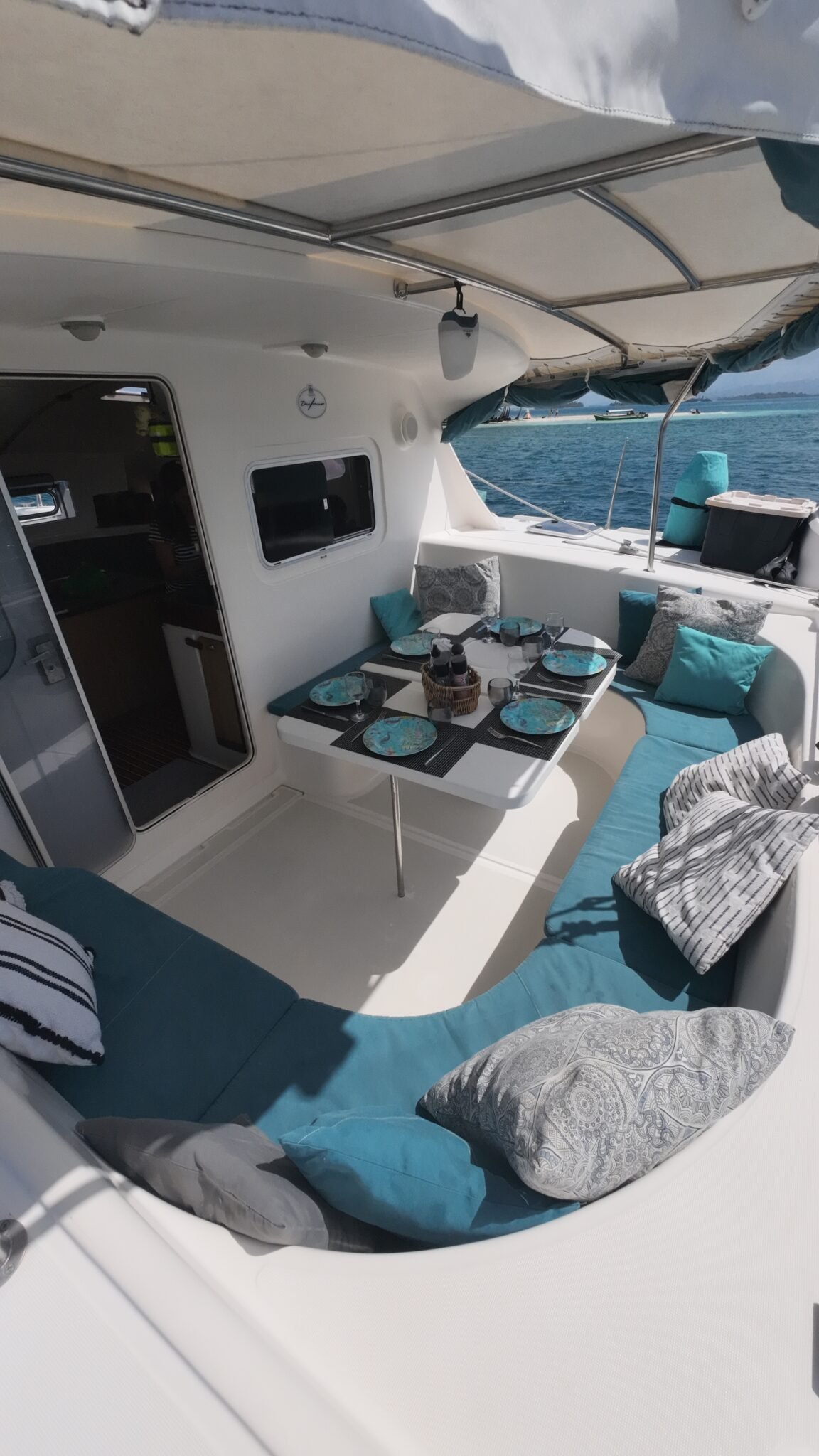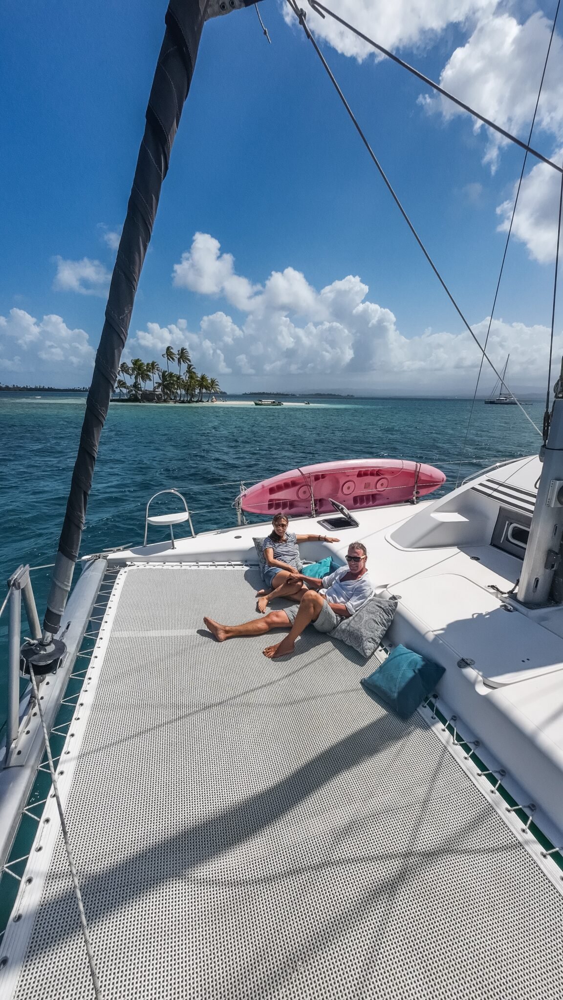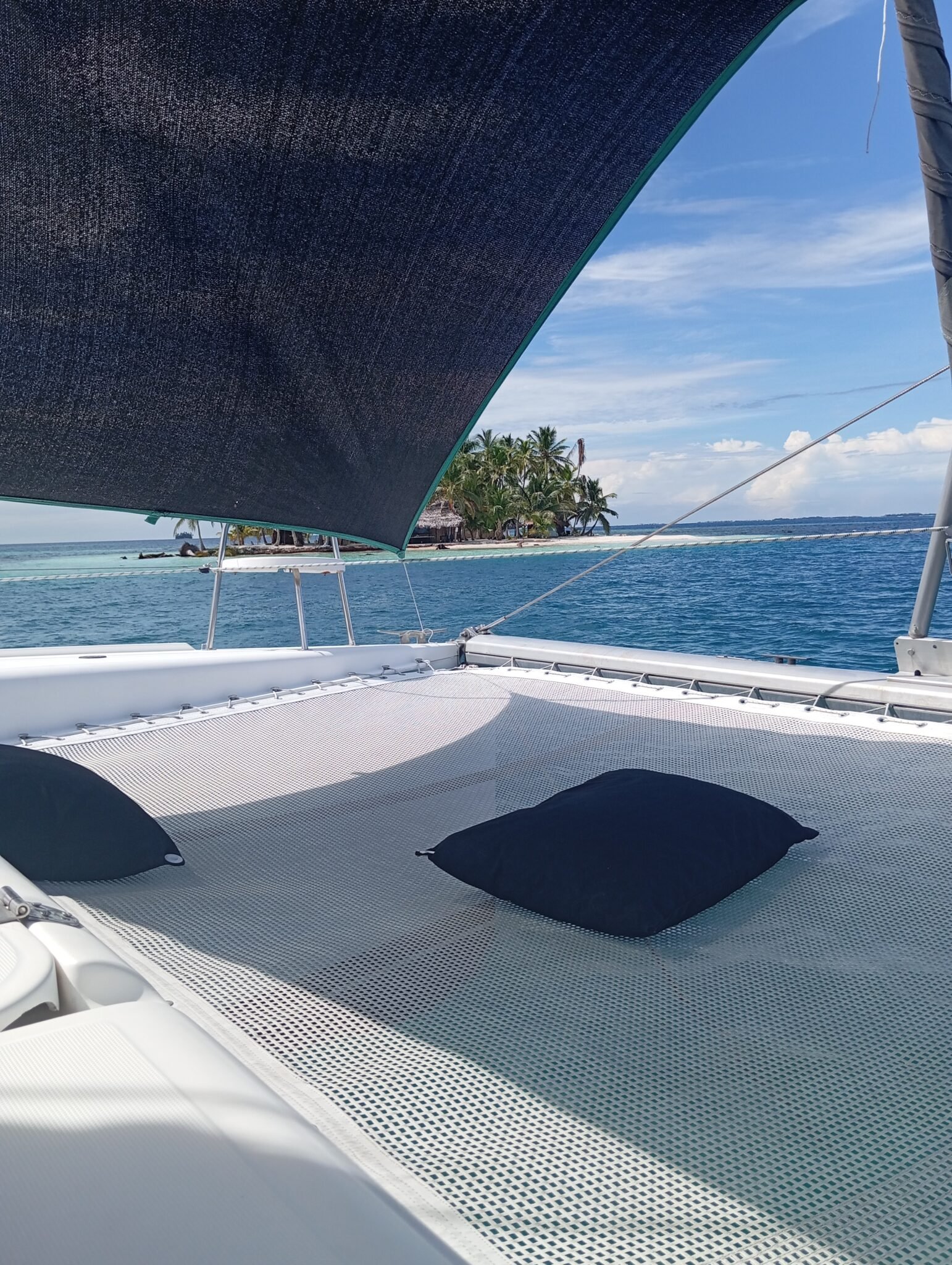 Tikay is a 40-foot Nautitech catamaran with three double cabins, two bathrooms, a full kitchen, and plenty of covered outdoor space. Reading lights, and USB chargers add comfort, and guests are provided with linens, towels, and basic toiletries. With a shaded cockpit, front trampoline, and years of experience in the region, Tikay is one of the longest-running boats in San Blas—a trusted, easygoing home on the water.