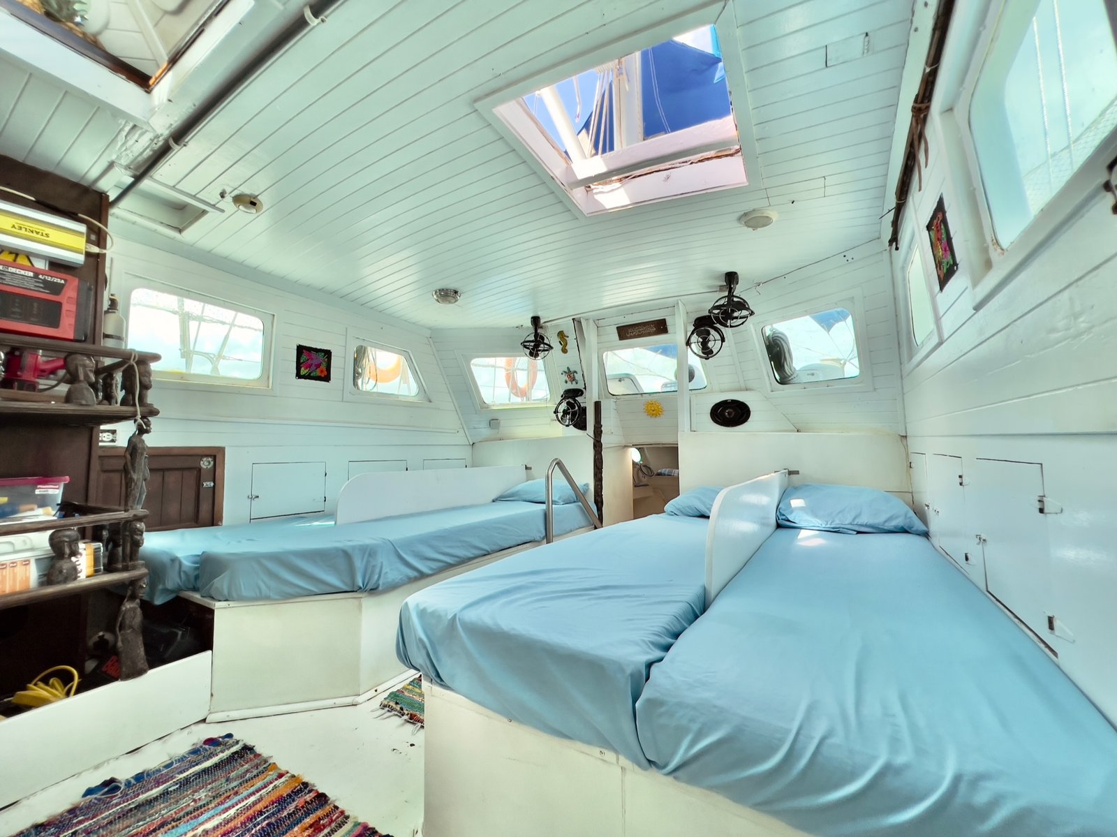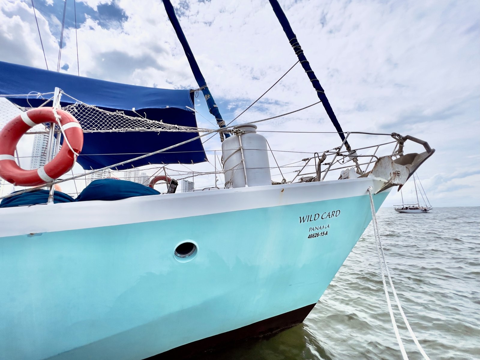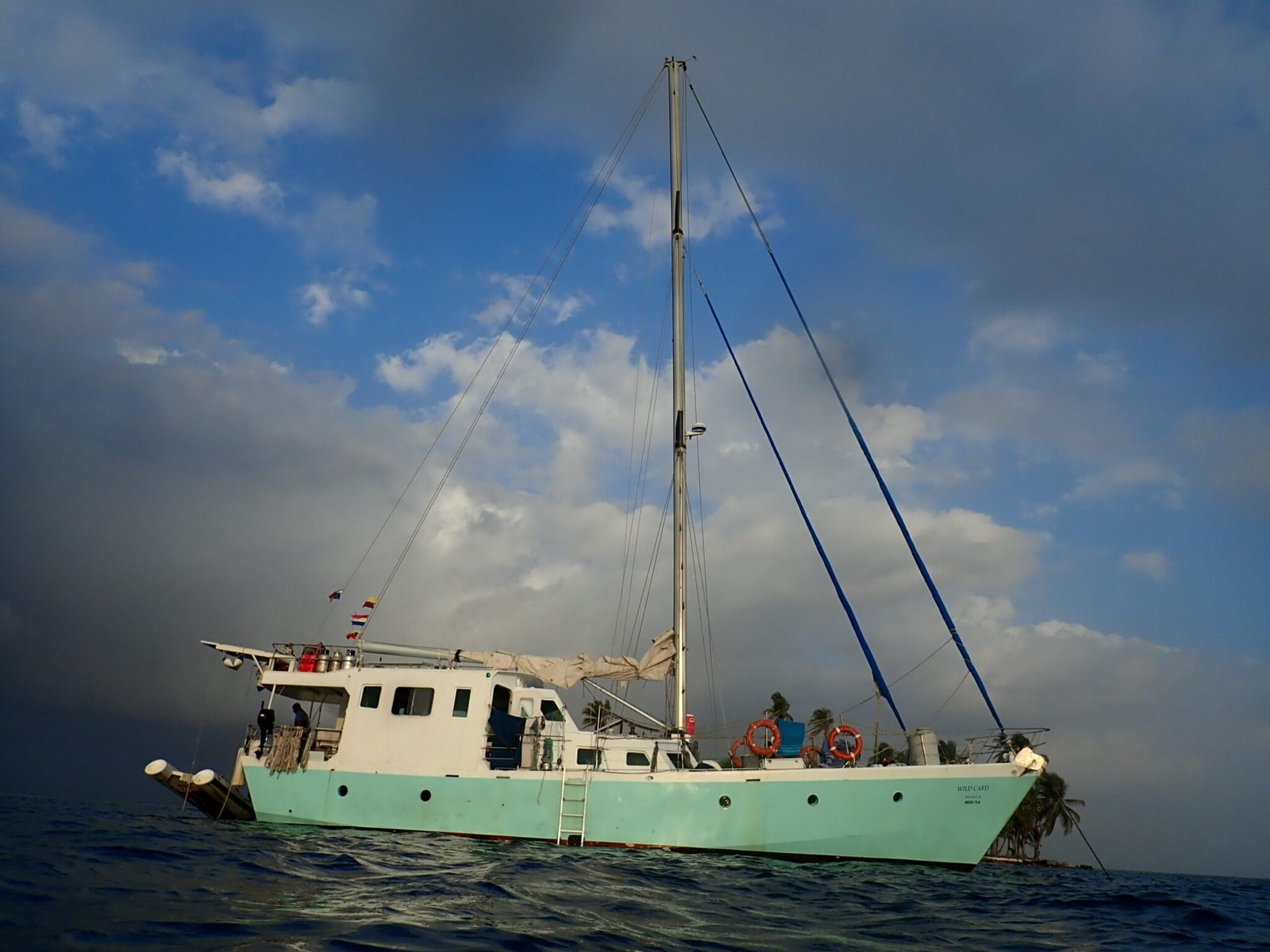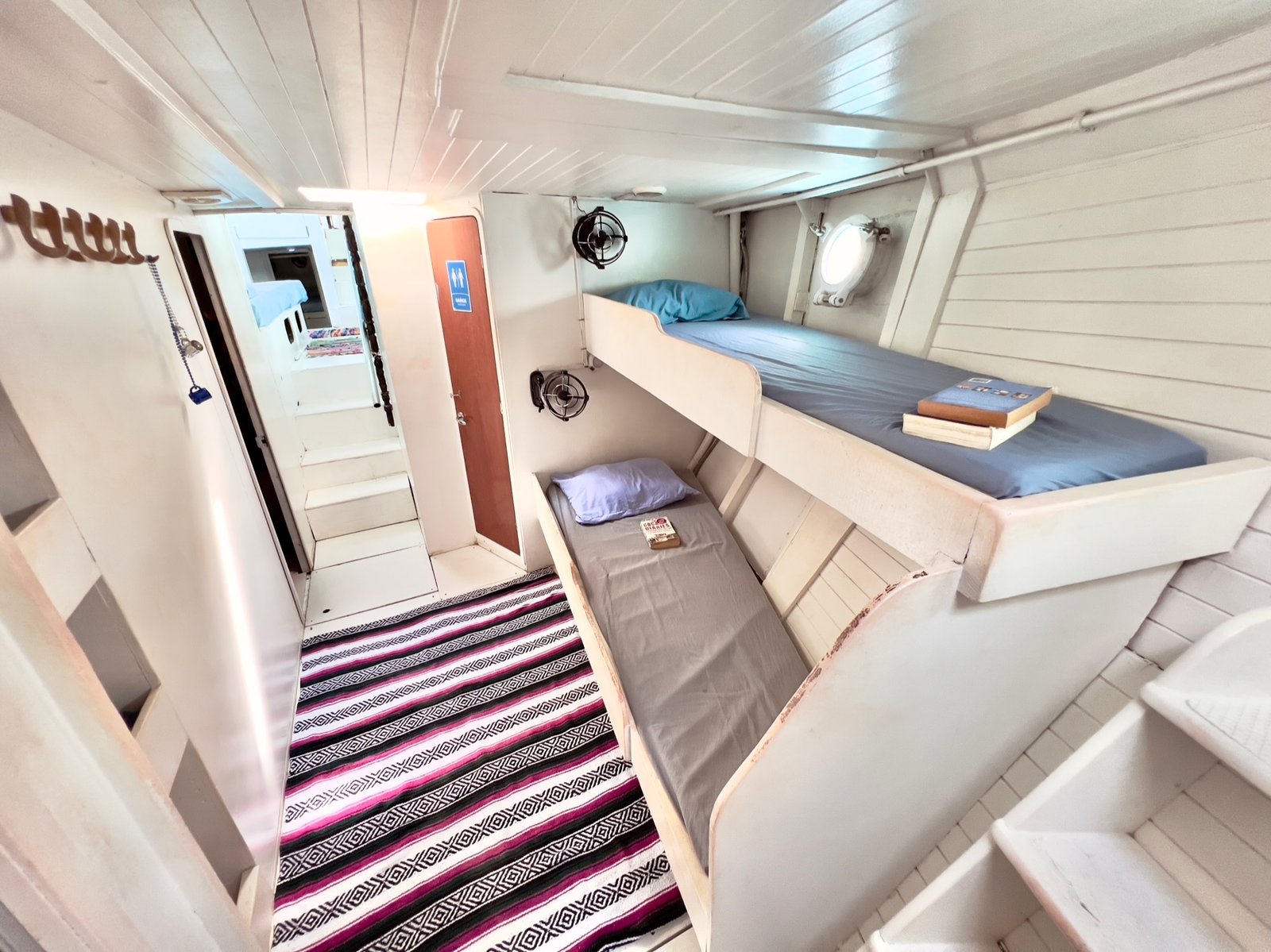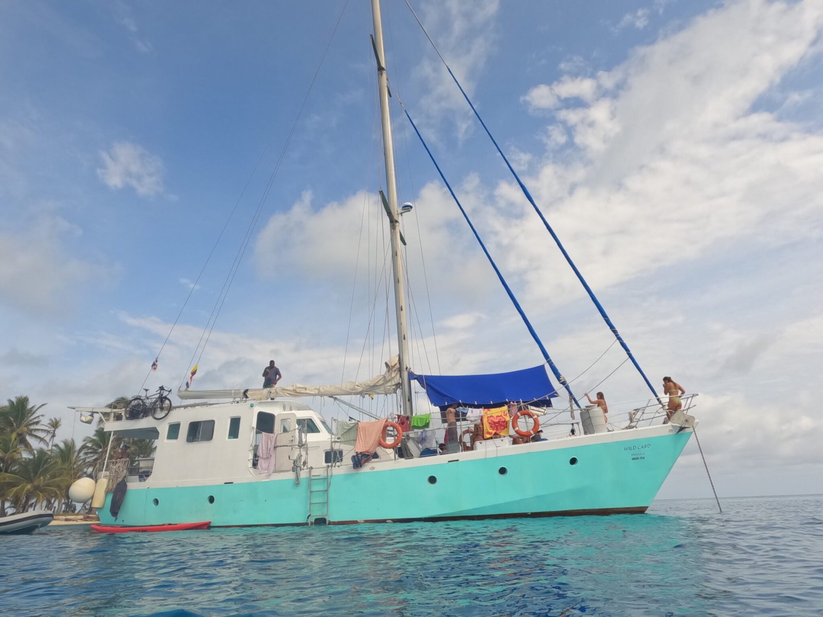 Wild Card is a 58 foot steel hull sailboat. It was built in 1970. It accommodates 20 passengers distributed throughout 8 double beds and 7 single bunks. There is a triple cabin with a single and a double bed in it and the rest are dorm style. She is a sturdy vessel originally constructed for deep-ocean cruising in the Southern water of Australia. Her size and stability make her a popular choice for passengers concerned with seasickness. It has two bathrooms with electric toilets. The fore deck has ample space for people to party or find a spot to relax.