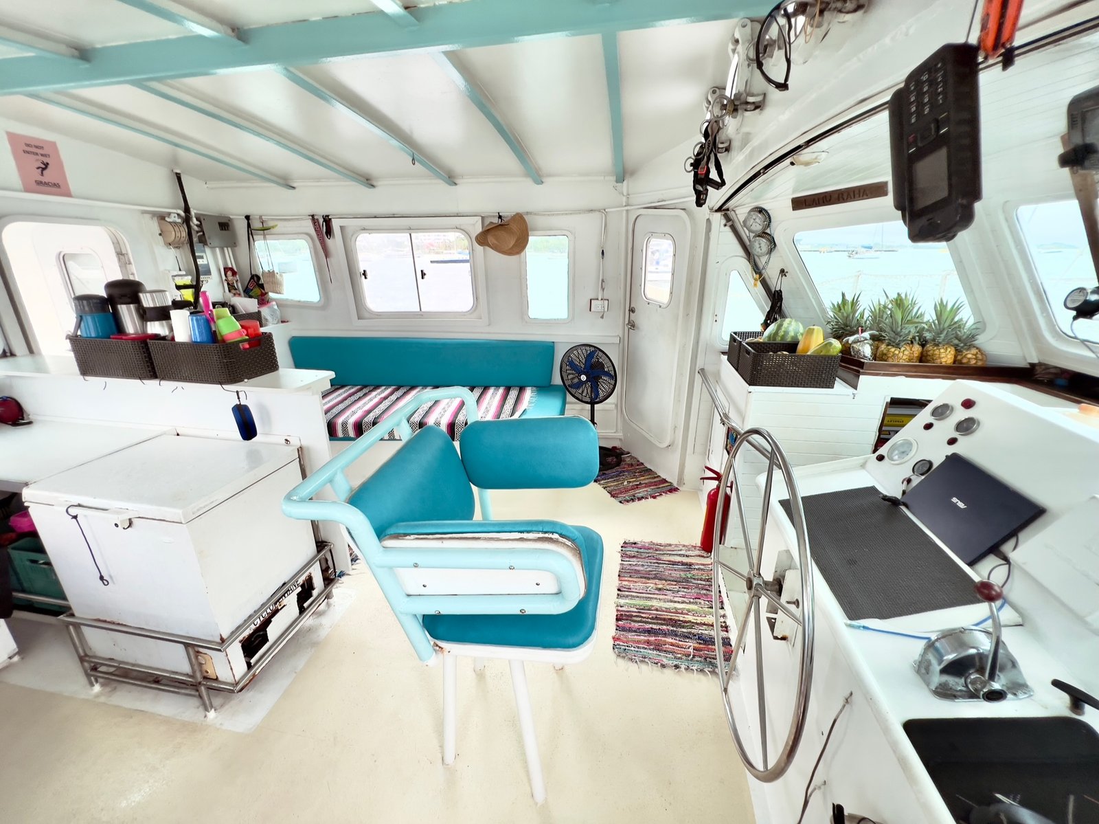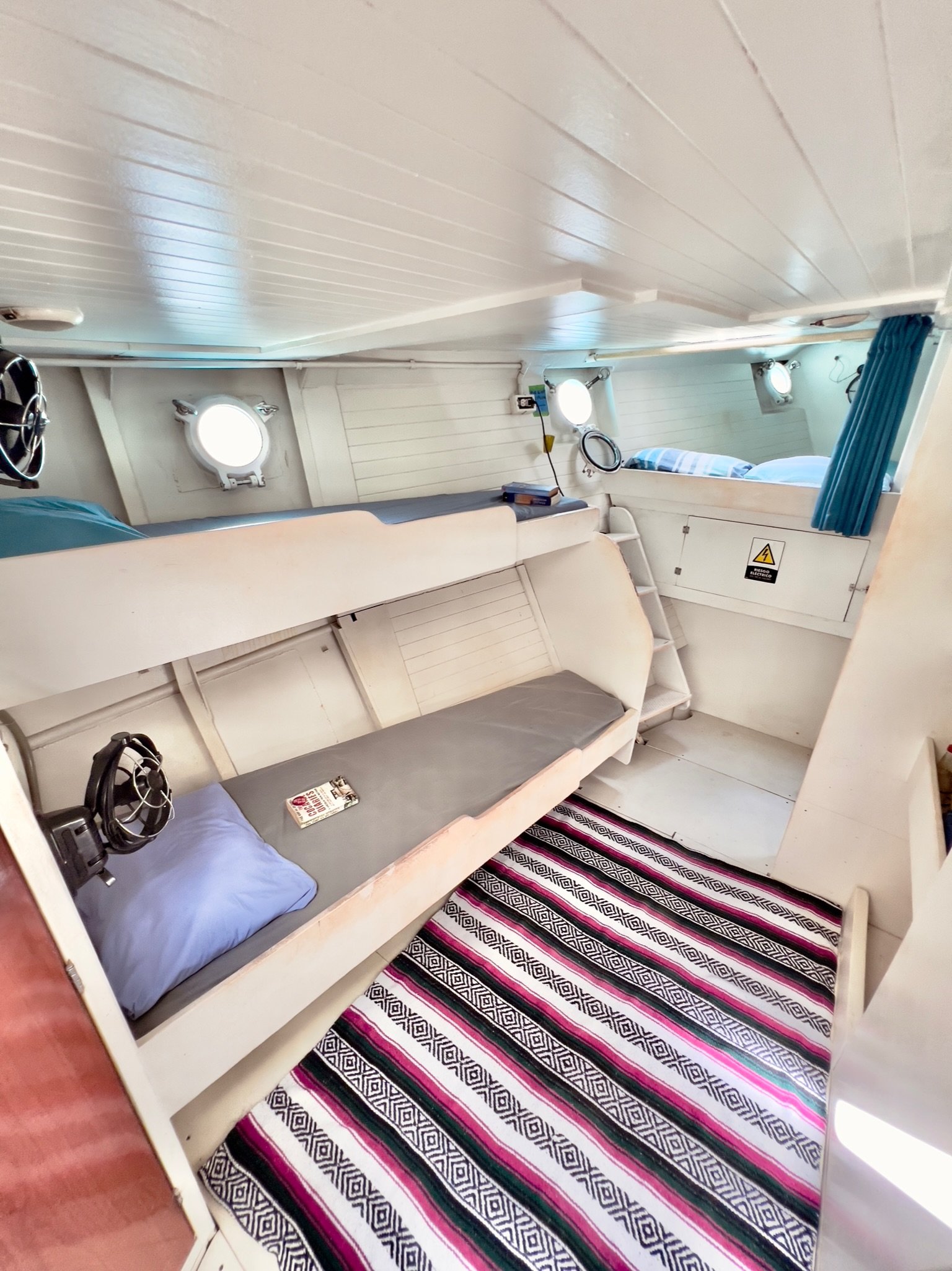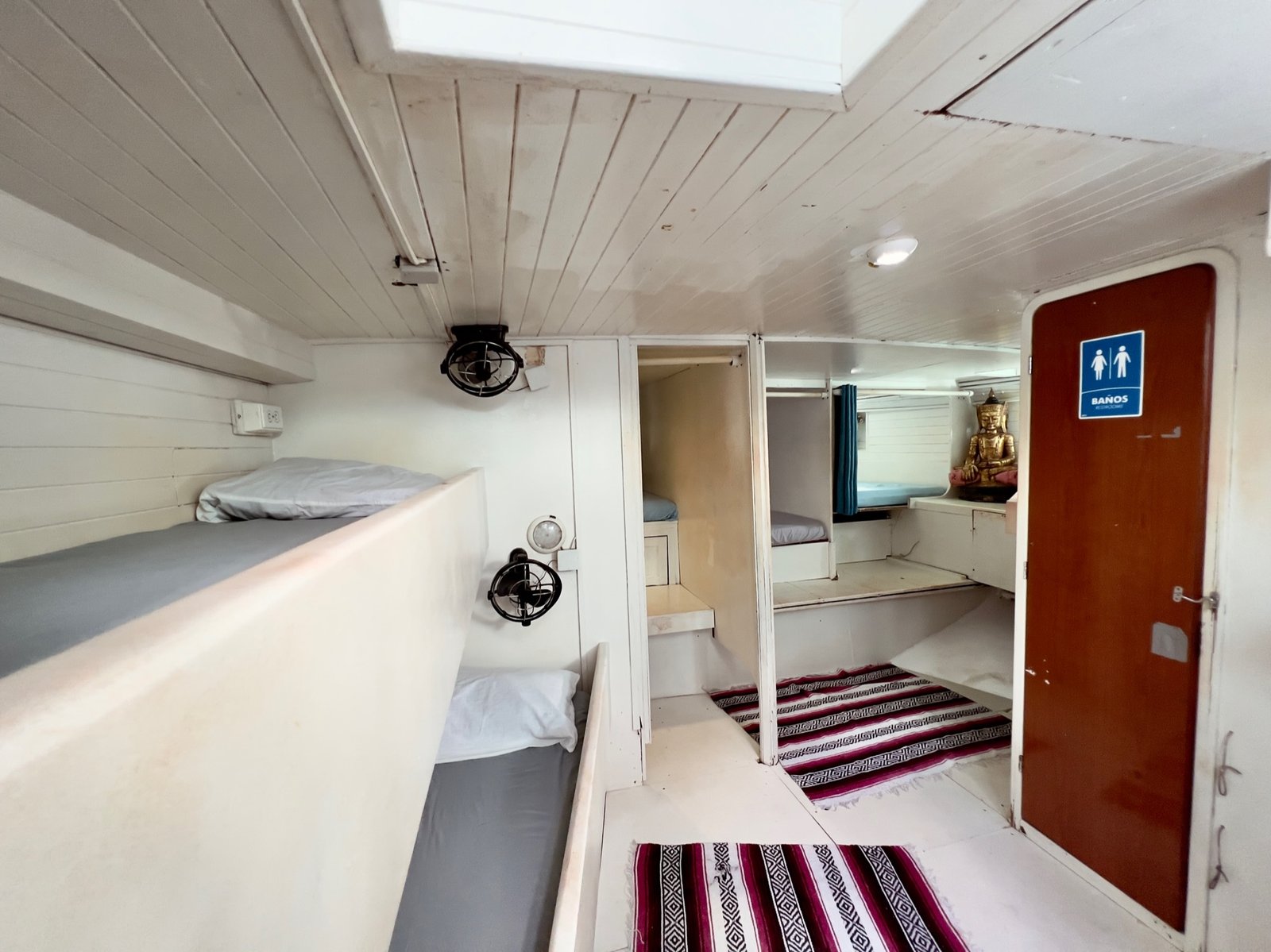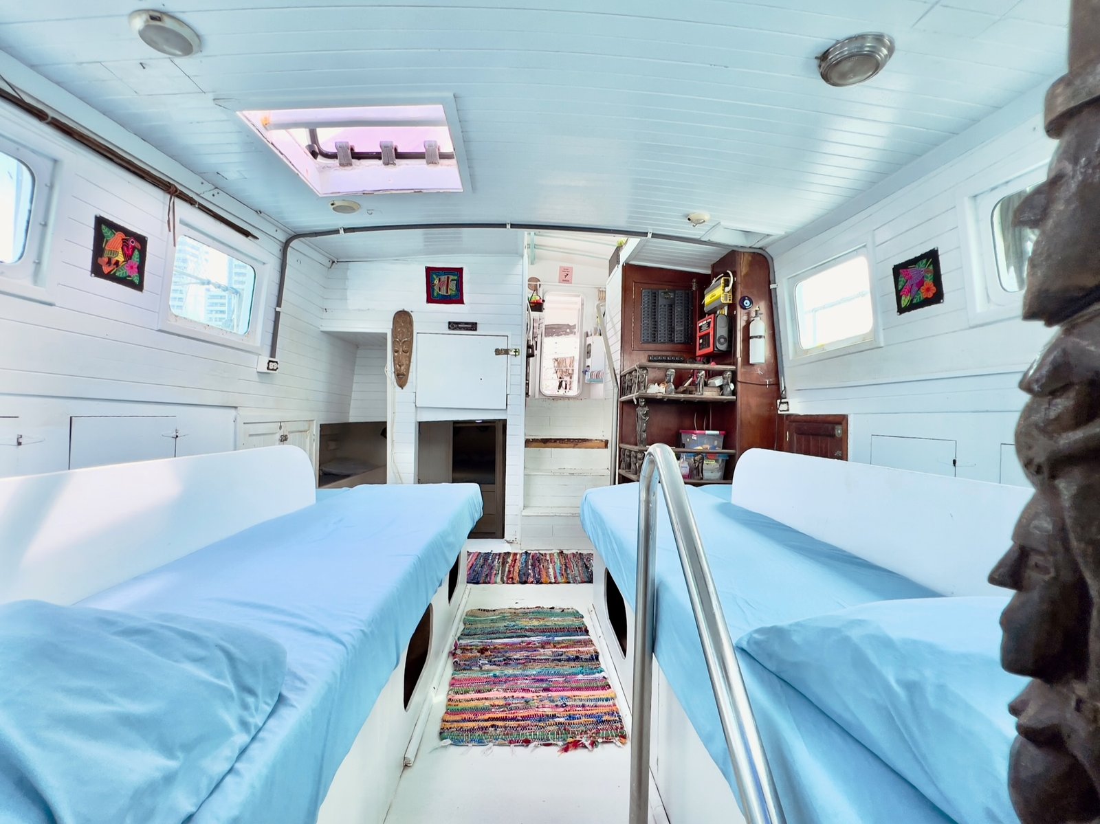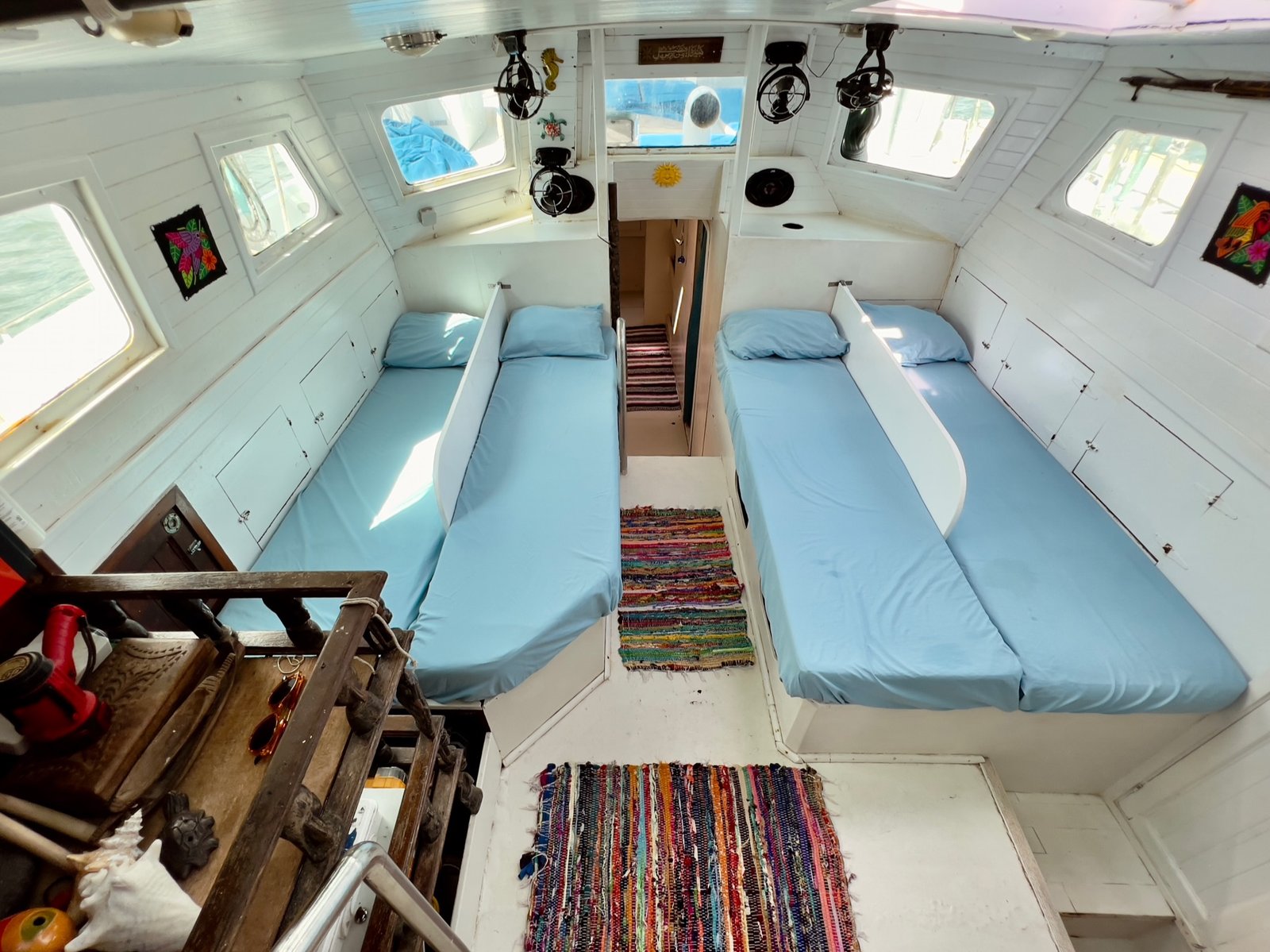 Wild Card is a 58 foot steel hull sailboat. It was built in 1970. It accommodates 20 passengers distributed throughout 8 double beds and 7 single bunks. There is a triple cabin with a single and a double bed in it and the rest are dorm style. She is a sturdy vessel originally constructed for deep-ocean cruising in the Southern water of Australia. Her size and stability make her a popular choice for passengers concerned with seasickness. It has two bathrooms with electric toilets. The fore deck has ample space for people to party or find a spot to relax.