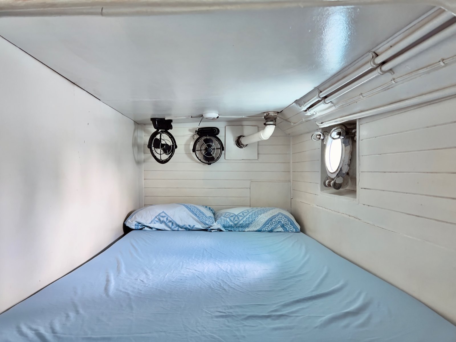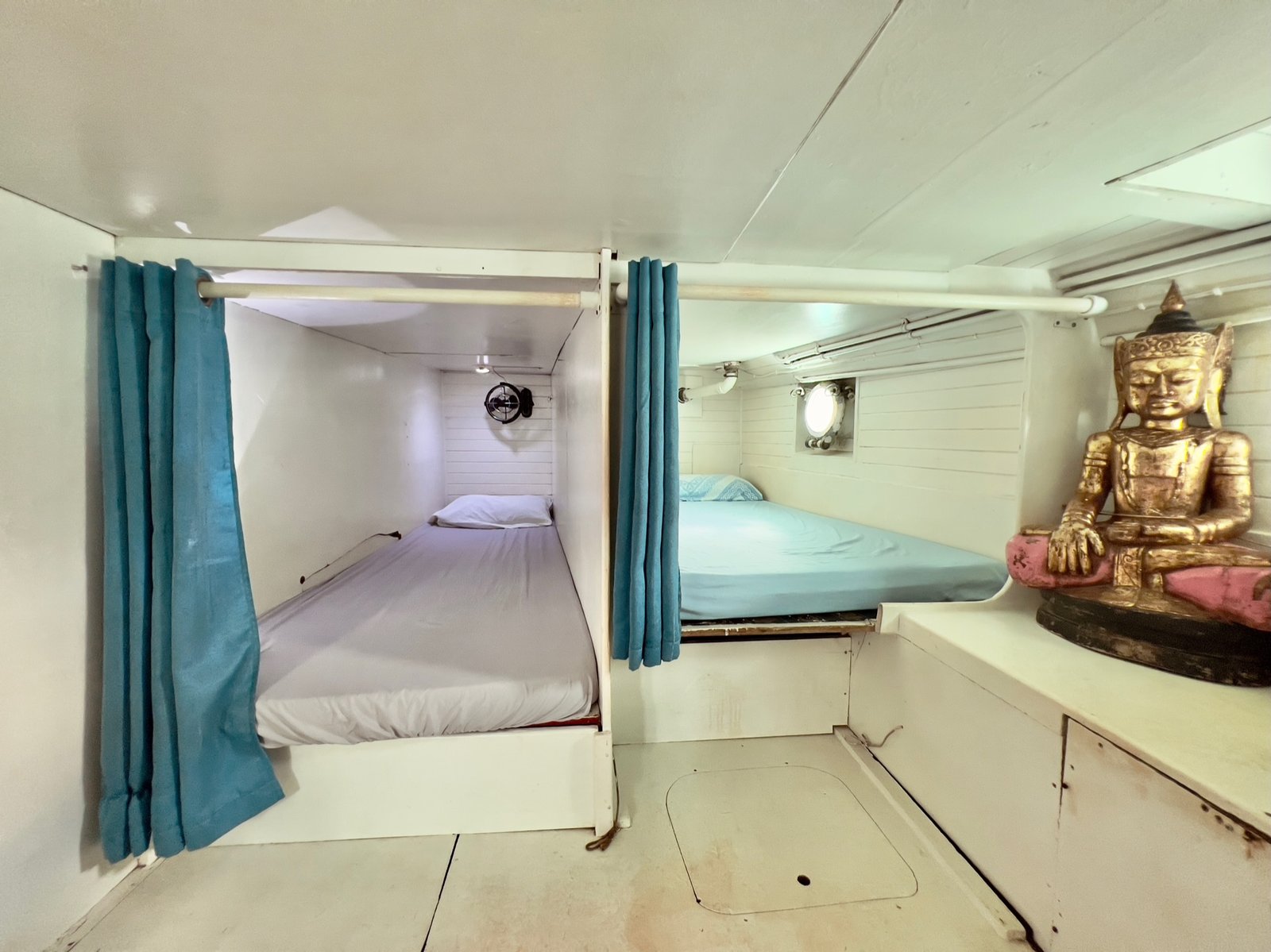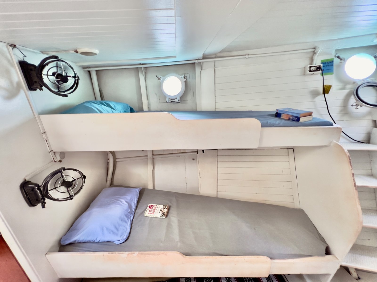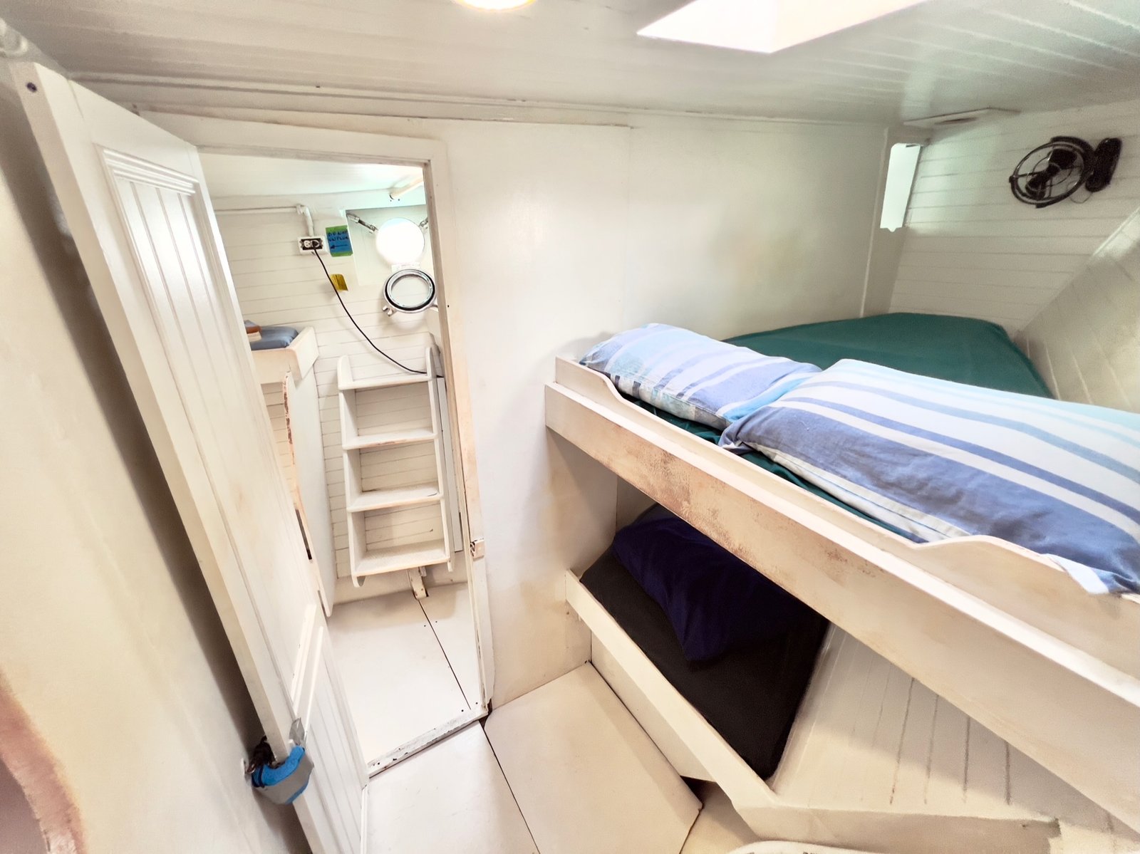 Wild Card is a 58 foot steel hull sailboat. It was built in 1970. It accommodates 20 passengers distributed throughout 8 double beds and 7 single bunks. There is a triple cabin with a single and a double bed in it and the rest are dorm style. She is a sturdy vessel originally constructed for deep-ocean cruising in the Southern water of Australia. Her size and stability make her a popular choice for passengers concerned with seasickness. It has two bathrooms with electric toilets. The fore deck has ample space for people to party or find a spot to relax.