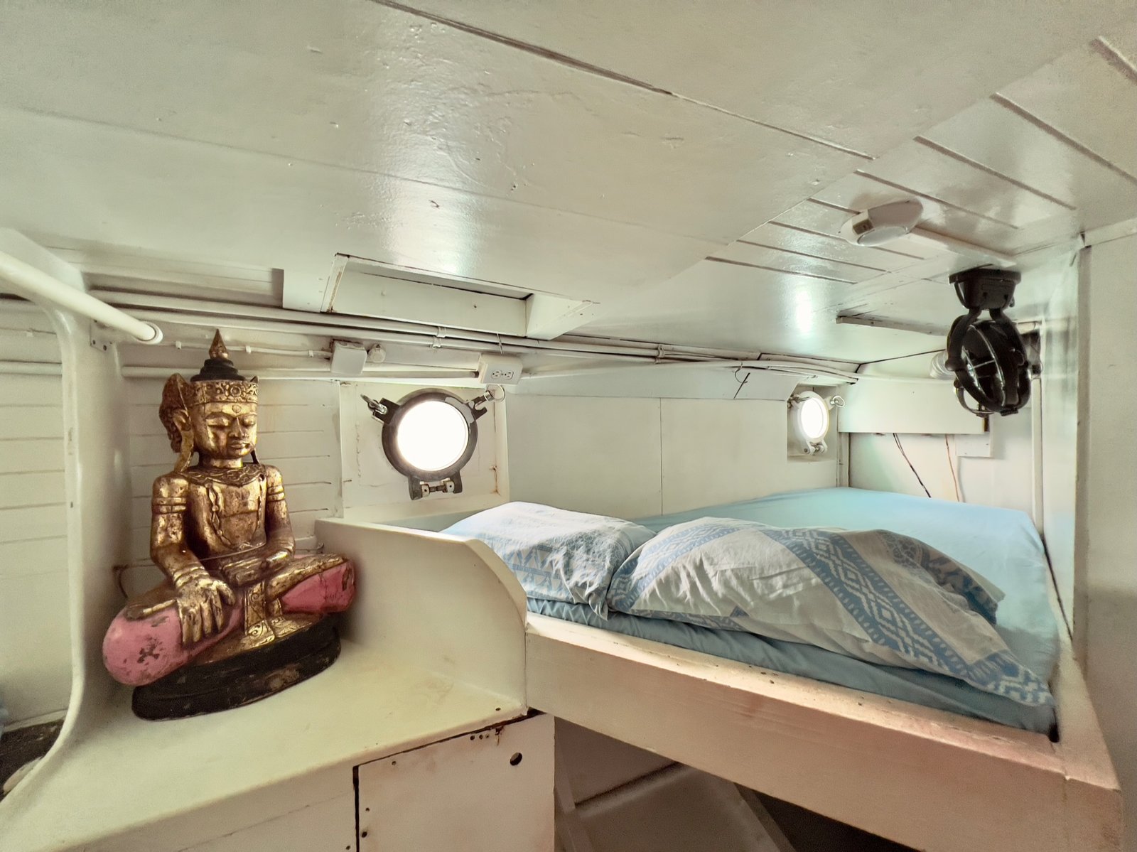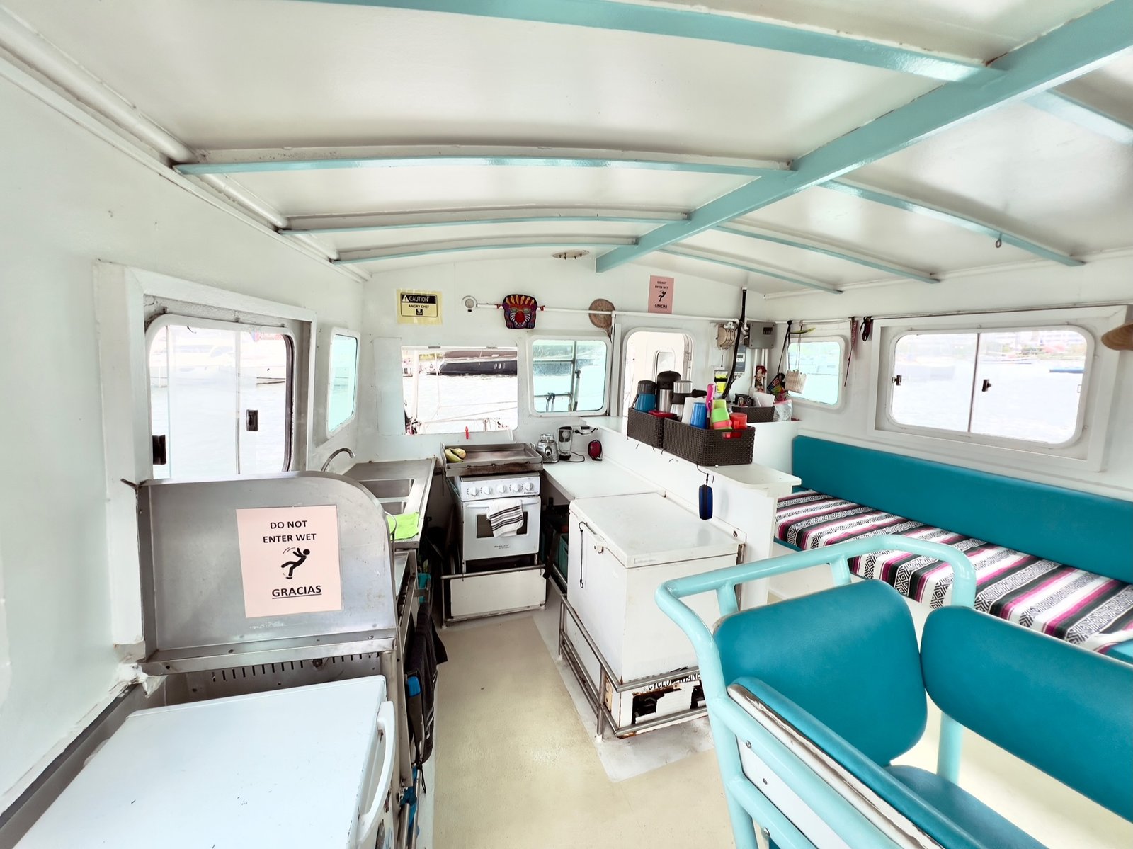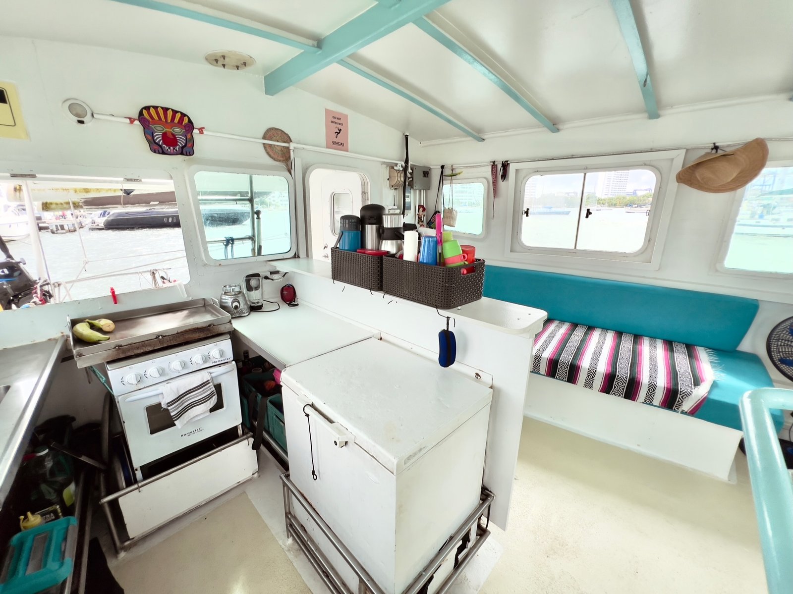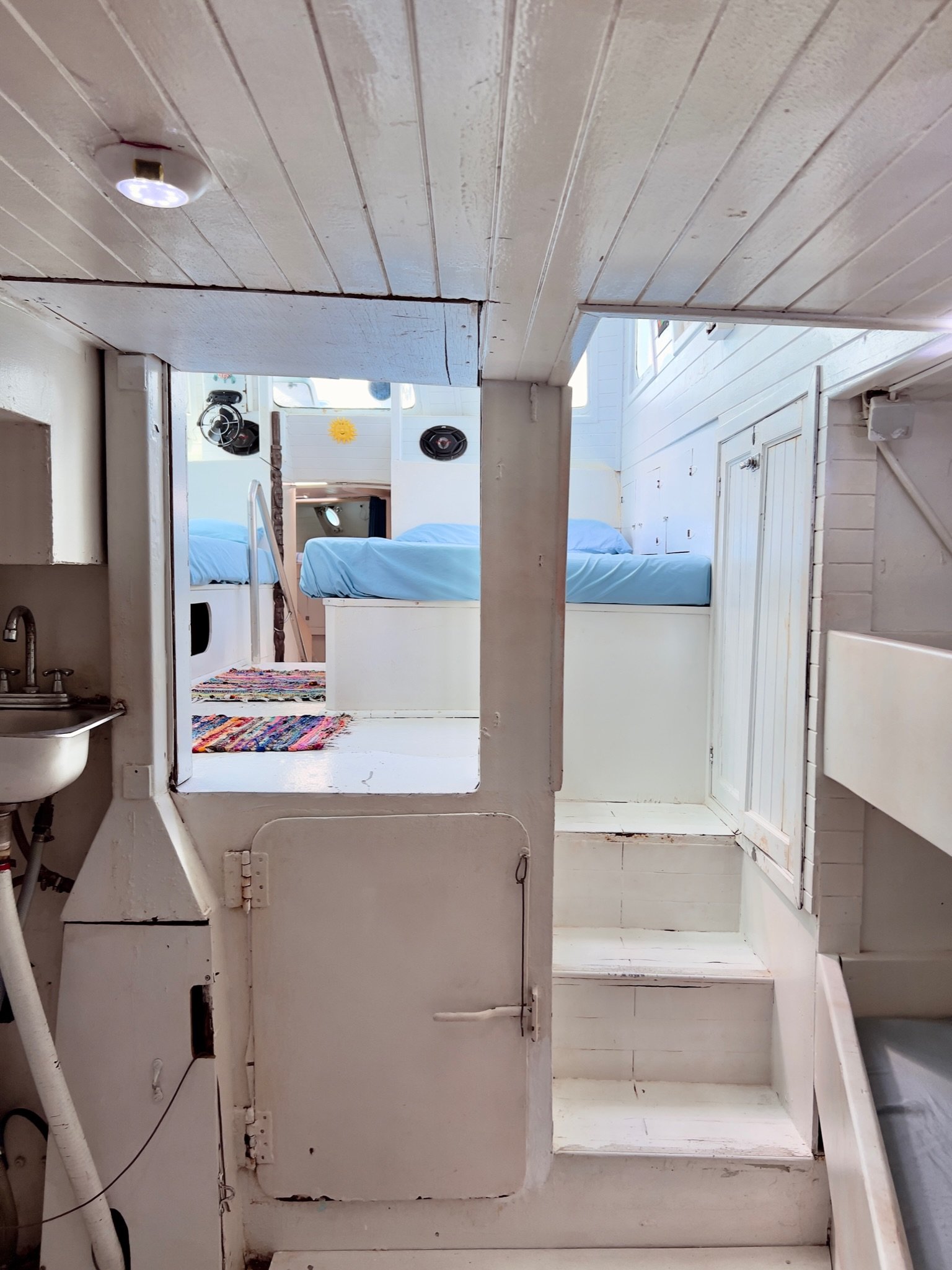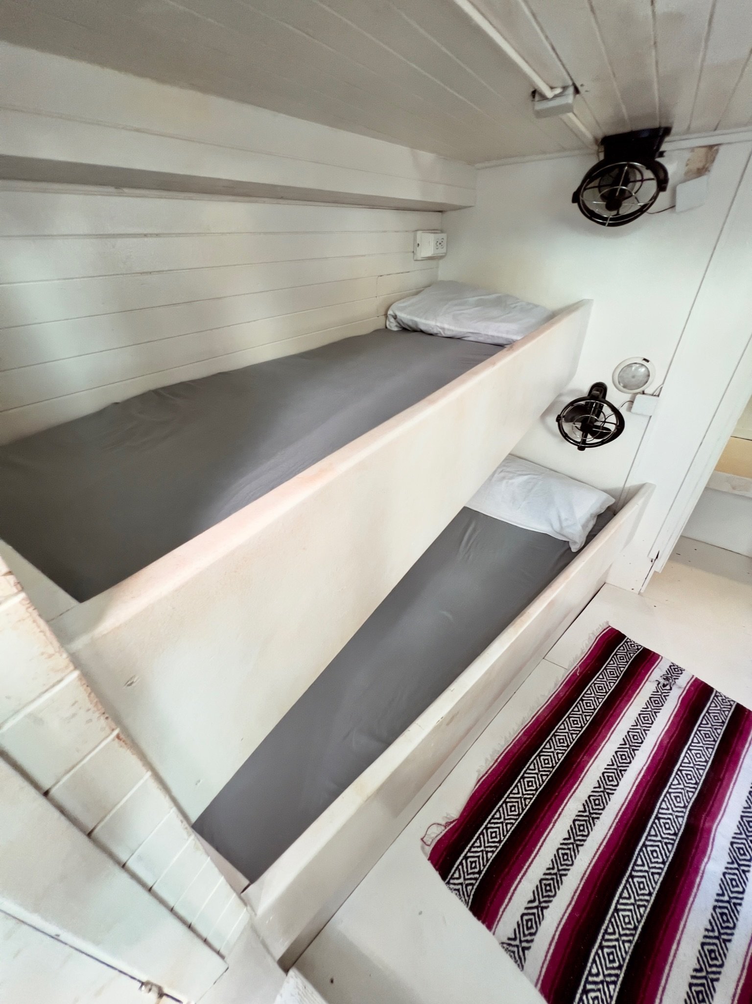 Wild Card is a 58 foot steel hull sailboat. It was built in 1970. It accommodates 20 passengers distributed throughout 8 double beds and 7 single bunks. There is a triple cabin with a single and a double bed in it and the rest are dorm style. She is a sturdy vessel originally constructed for deep-ocean cruising in the Southern water of Australia. Her size and stability make her a popular choice for passengers concerned with seasickness. It has two bathrooms with electric toilets. The fore deck has ample space for people to party or find a spot to relax.