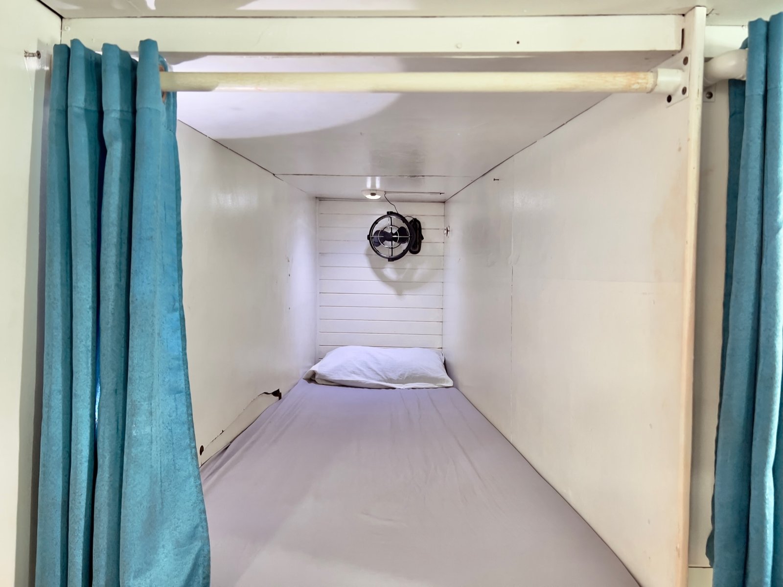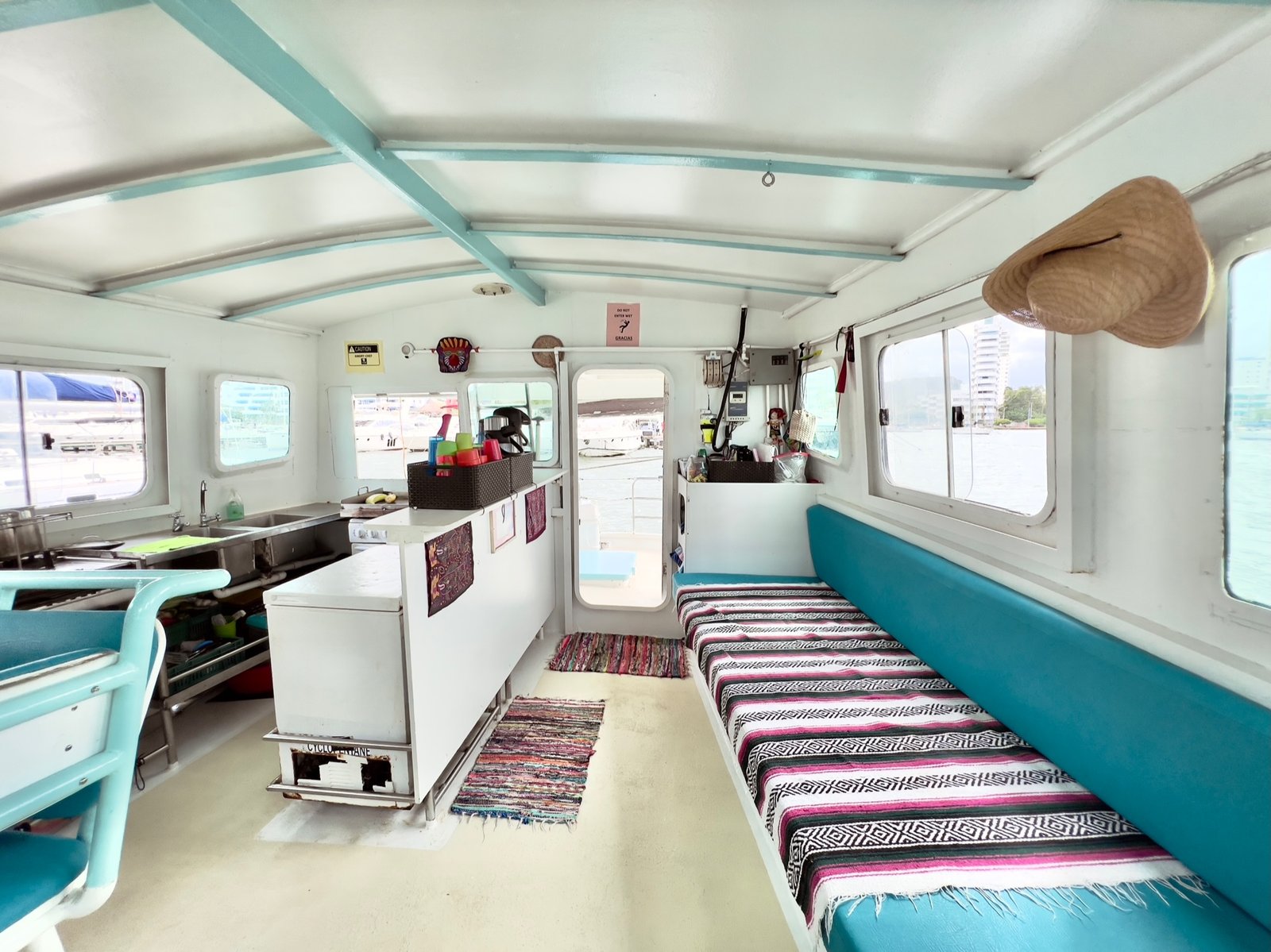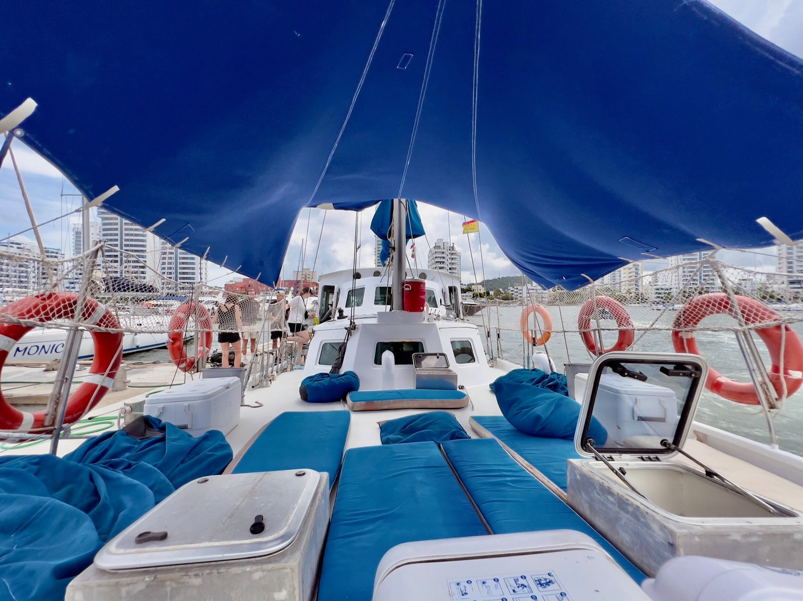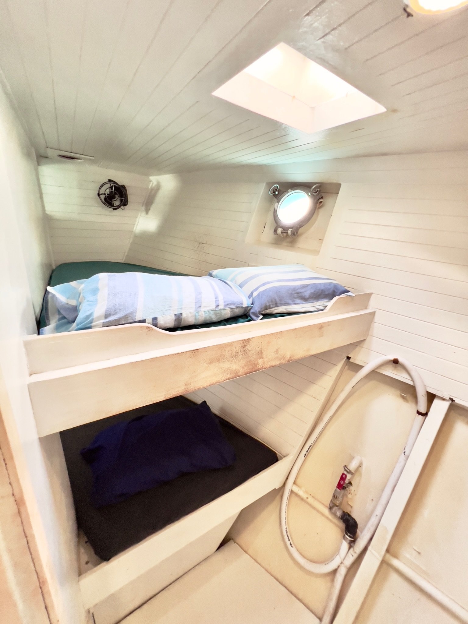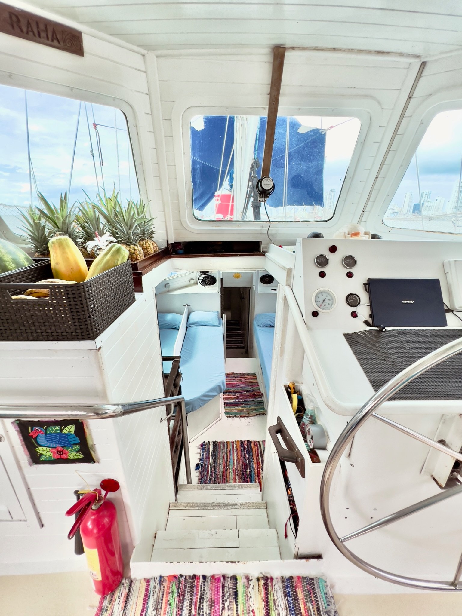Wild Card is a 58 foot steel hull sailboat. It was built in 1970. It accommodates 20 passengers distributed throughout 8 double beds and 7 single bunks. There is a triple cabin with a single and a double bed in it and the rest are dorm style. She is a sturdy vessel originally constructed for deep-ocean cruising in the Southern water of Australia. Her size and stability make her a popular choice for passengers concerned with seasickness. It has two bathrooms with electric toilets. The fore deck has ample space for people to party or find a spot to relax.