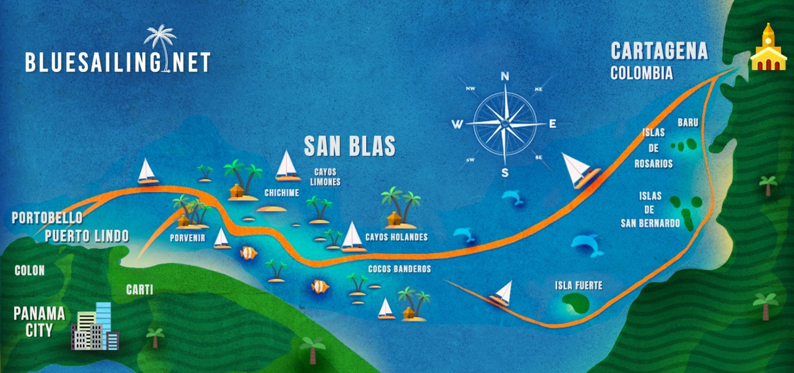 - Panama ↔ Colombia Route → Best if you want a bucket-list sailing crossing.