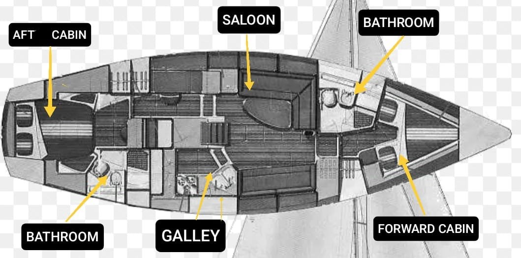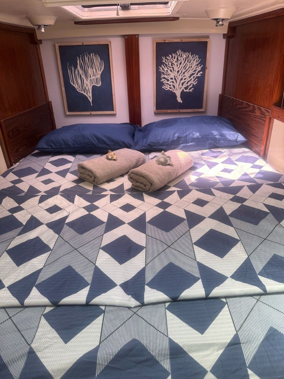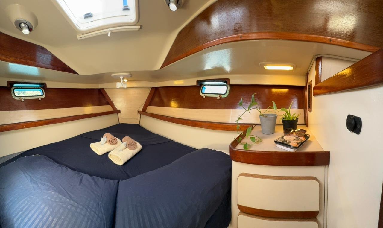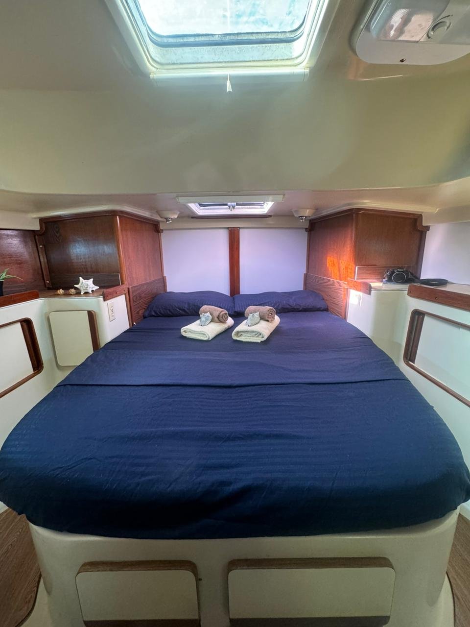 Itaca es un velero monocasco Irwin de 44 pies que ha sido completamente renovado, destacándose por su excepcional comodidad y amplios espacios habitables. Cuenta con dos cabinas, cada una con baño privado, un salón que integra la cocina y el comedor, y un generoso espacio exterior. Su diseño con cockpit central maximiza la amplitud tanto de la cabina de popa como del área exterior, ofreciendo una experiencia de navegación más cómoda.