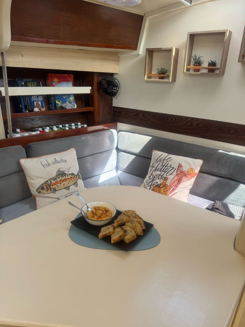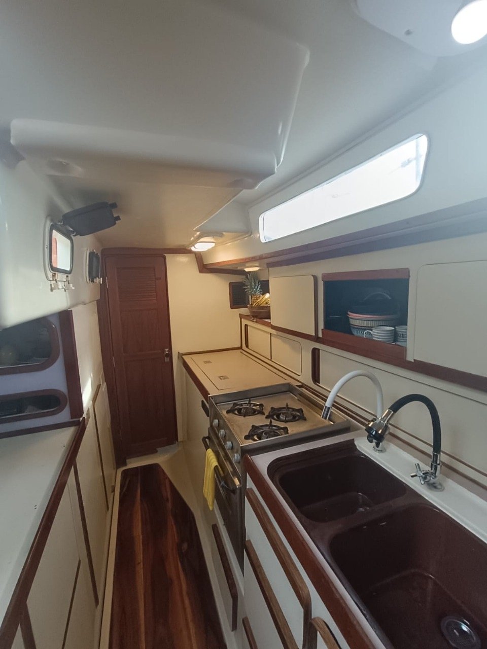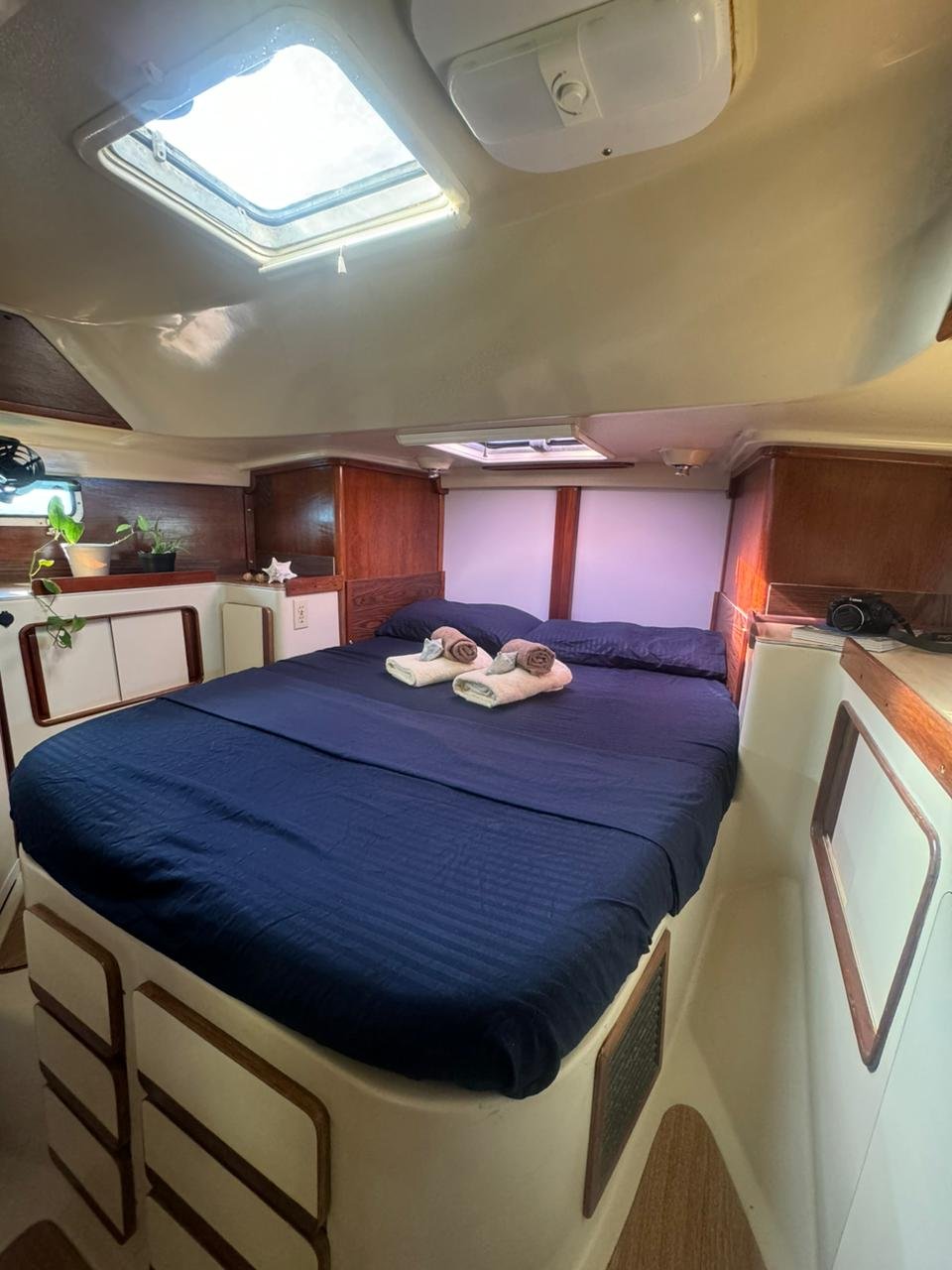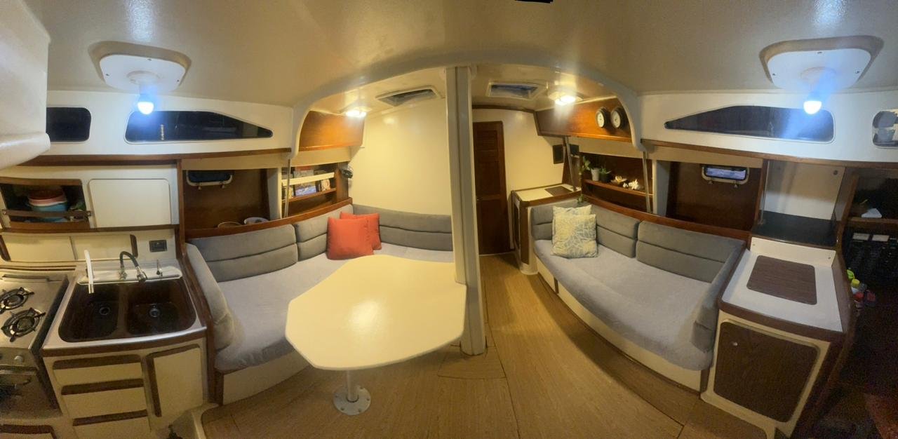 Itaca es un velero monocasco Irwin de 44 pies que ha sido completamente renovado, destacándose por su excepcional comodidad y amplios espacios habitables. Cuenta con dos cabinas, cada una con baño privado, un salón que integra la cocina y el comedor, y un generoso espacio exterior. Su diseño con cockpit central maximiza la amplitud tanto de la cabina de popa como del área exterior, ofreciendo una experiencia de navegación más cómoda.